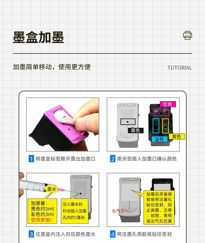 适用惠普佳能2600 2700 3100 845 803 805打印机添加专用填充墨水