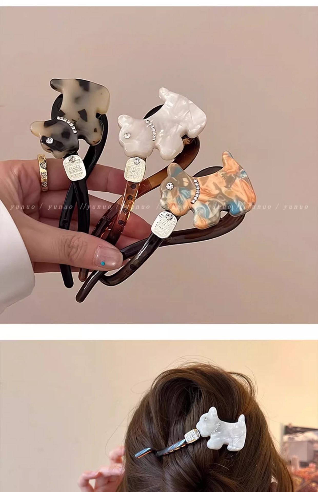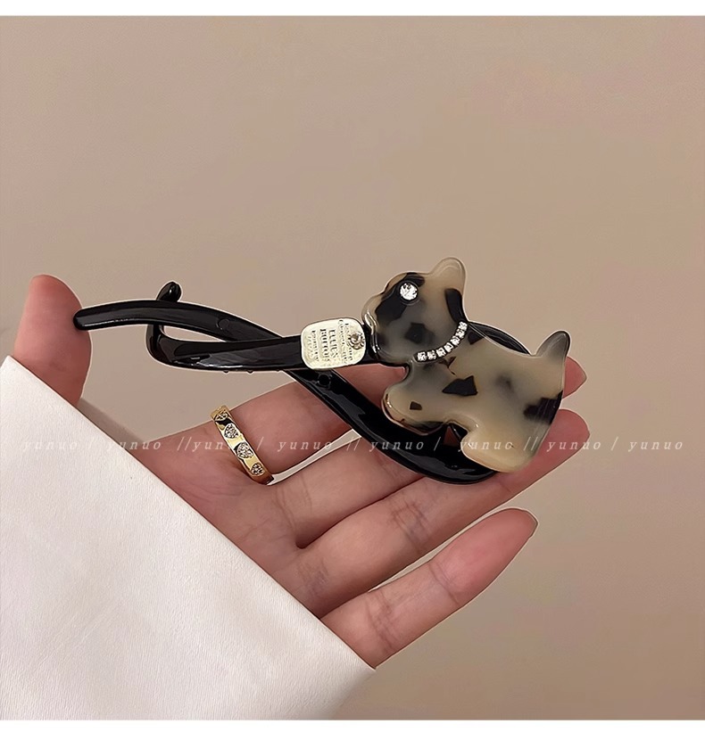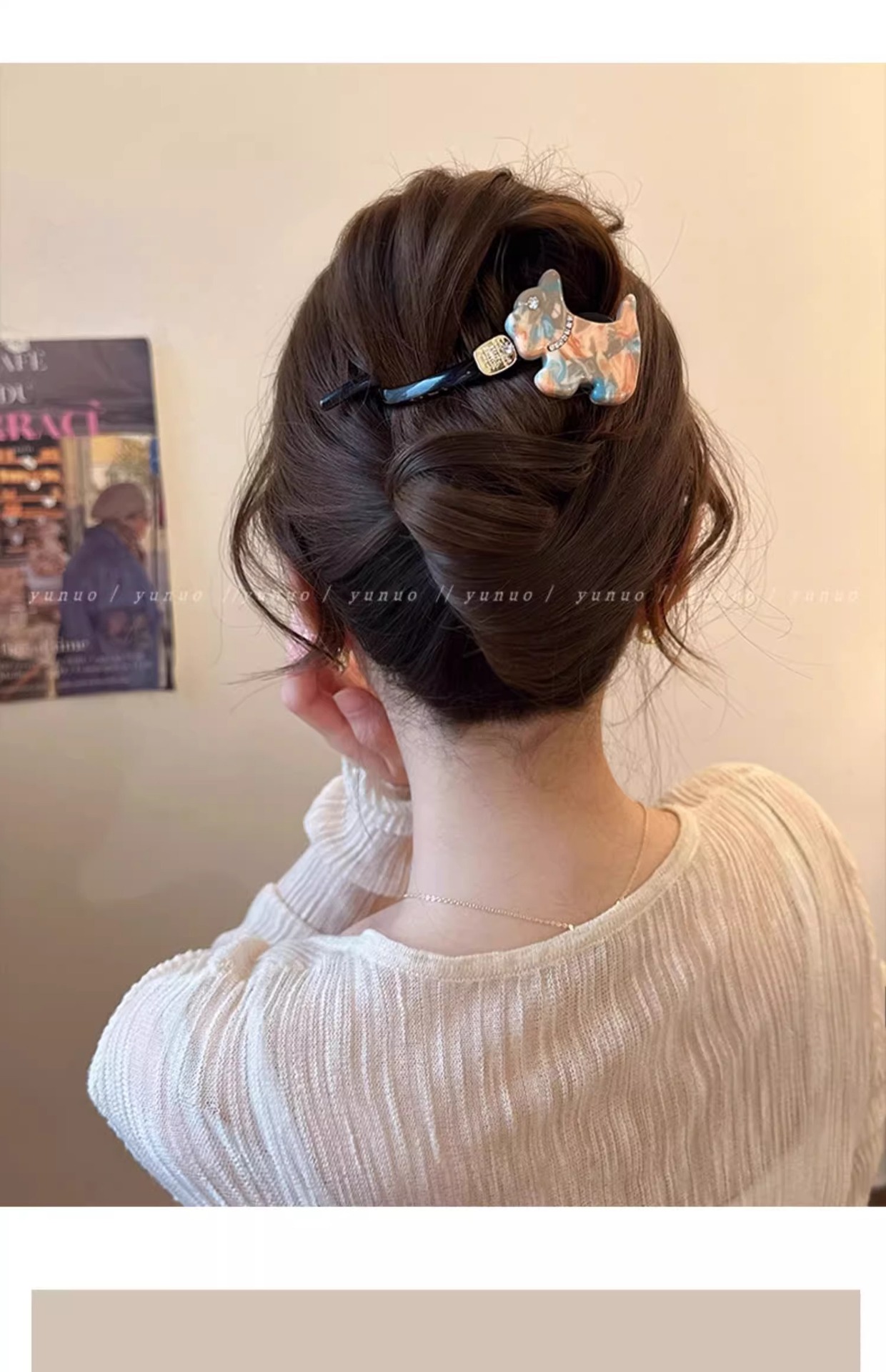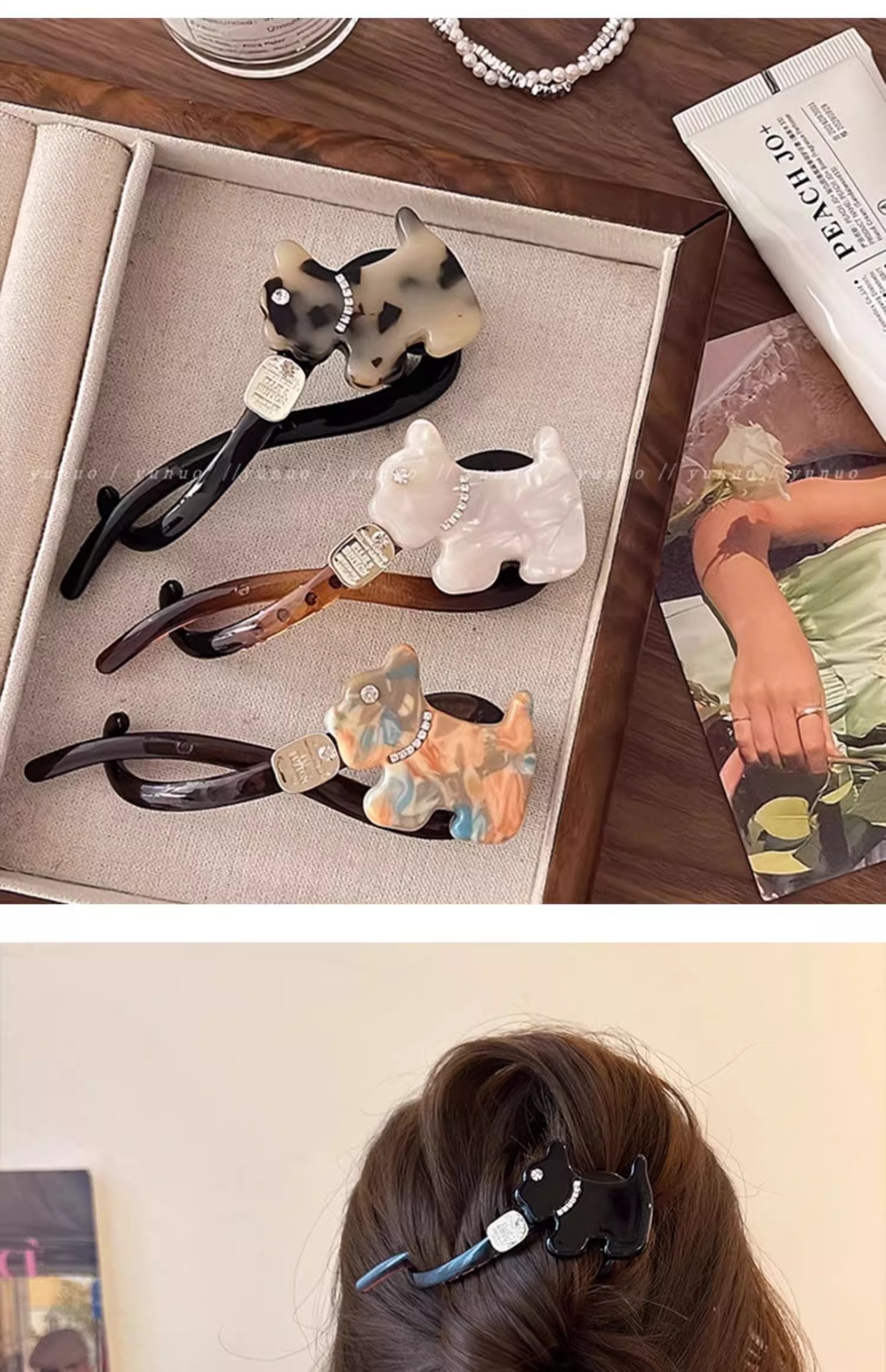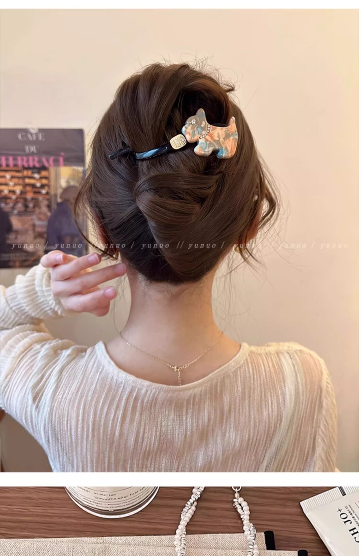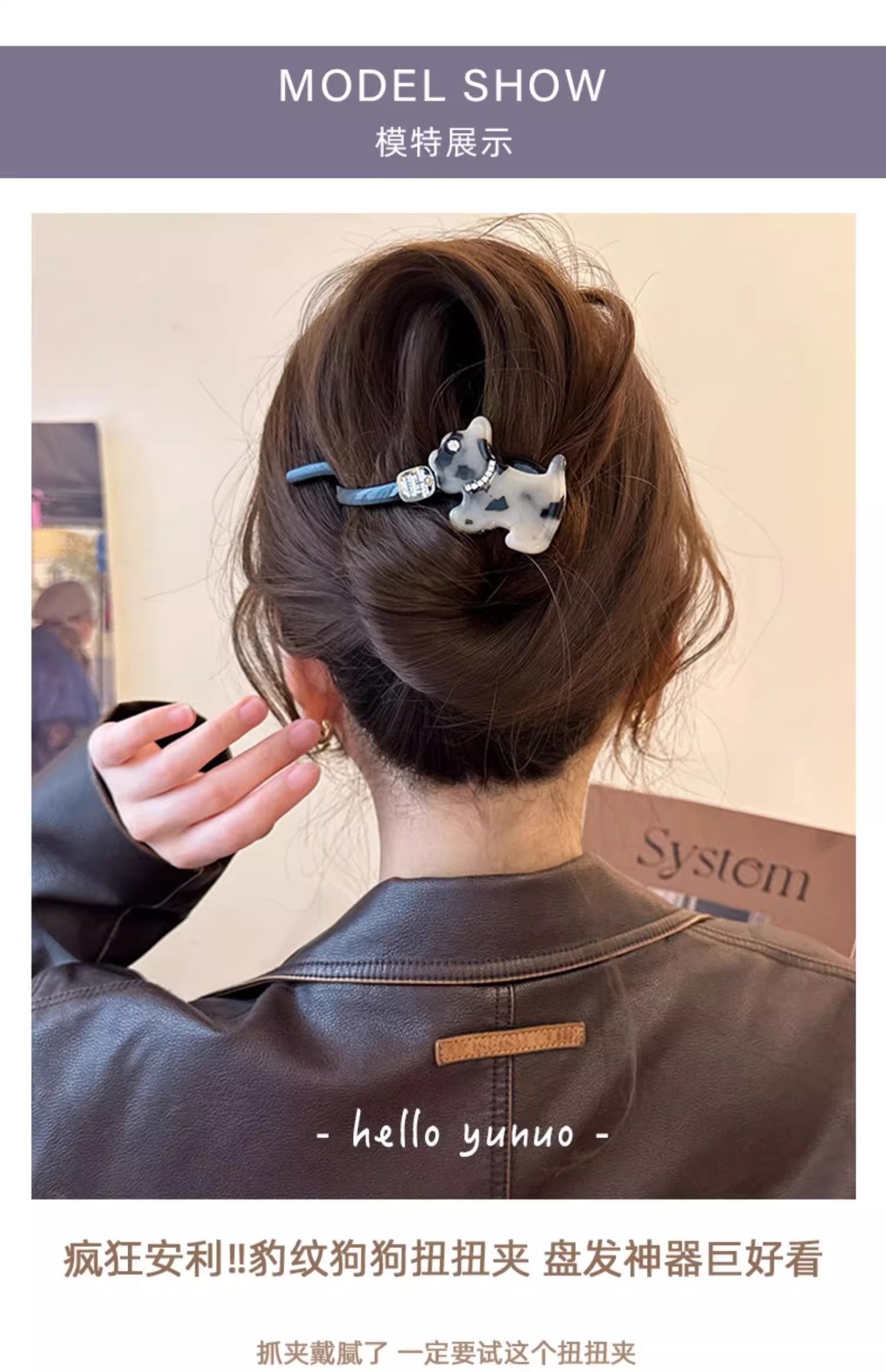 气质醋酸小狗一字扭扭夹女2025新款高级感发夹后脑勺盘发抓夹头饰