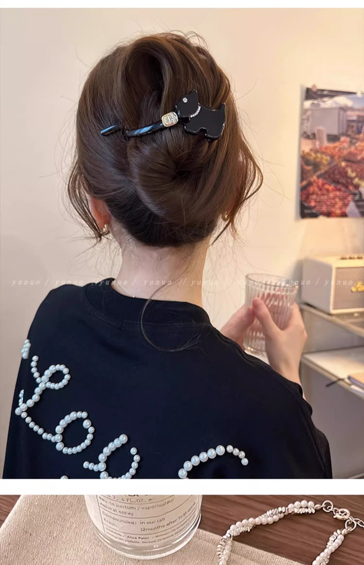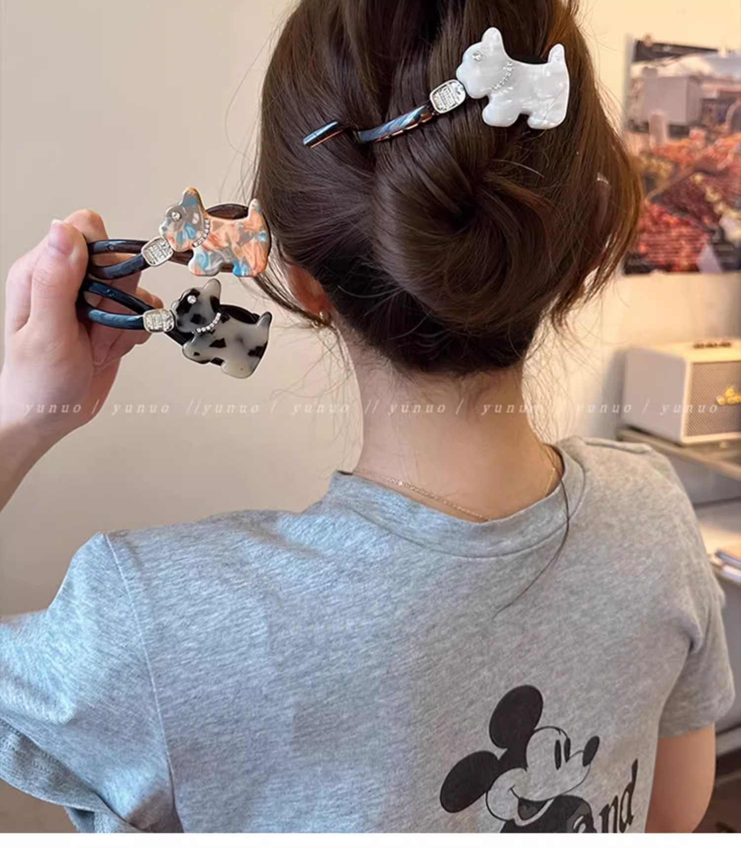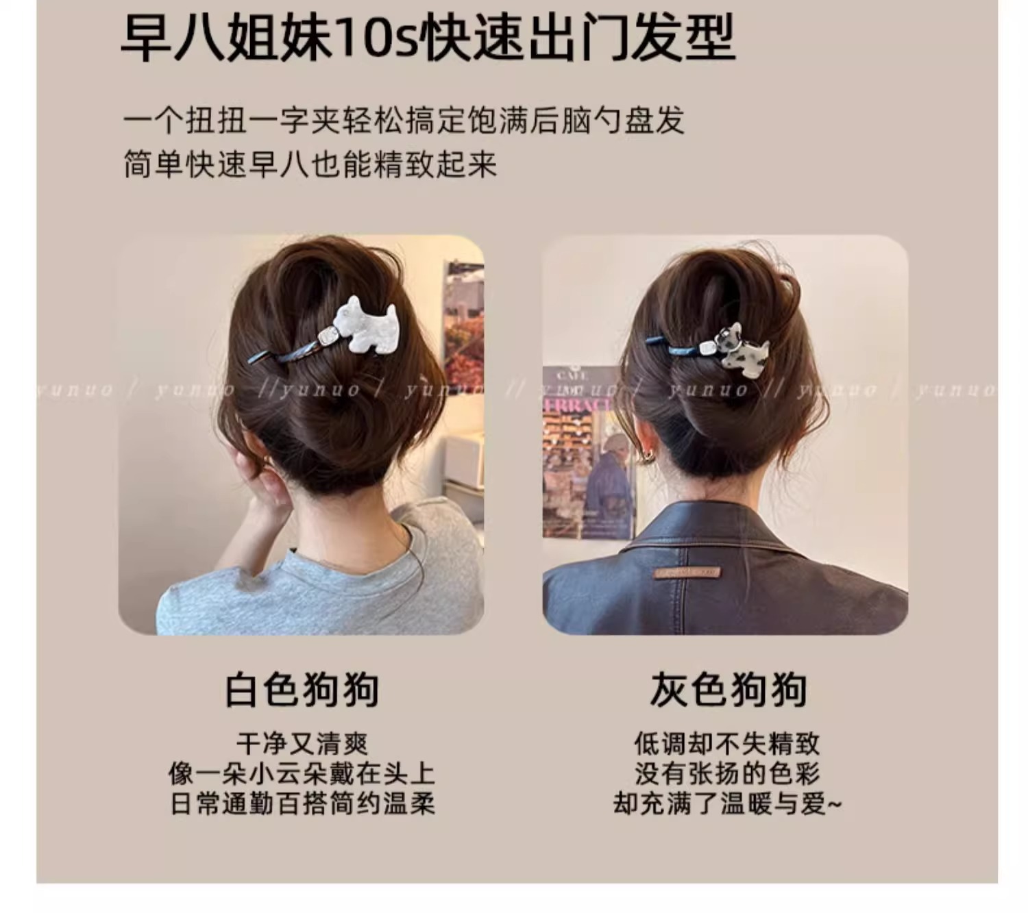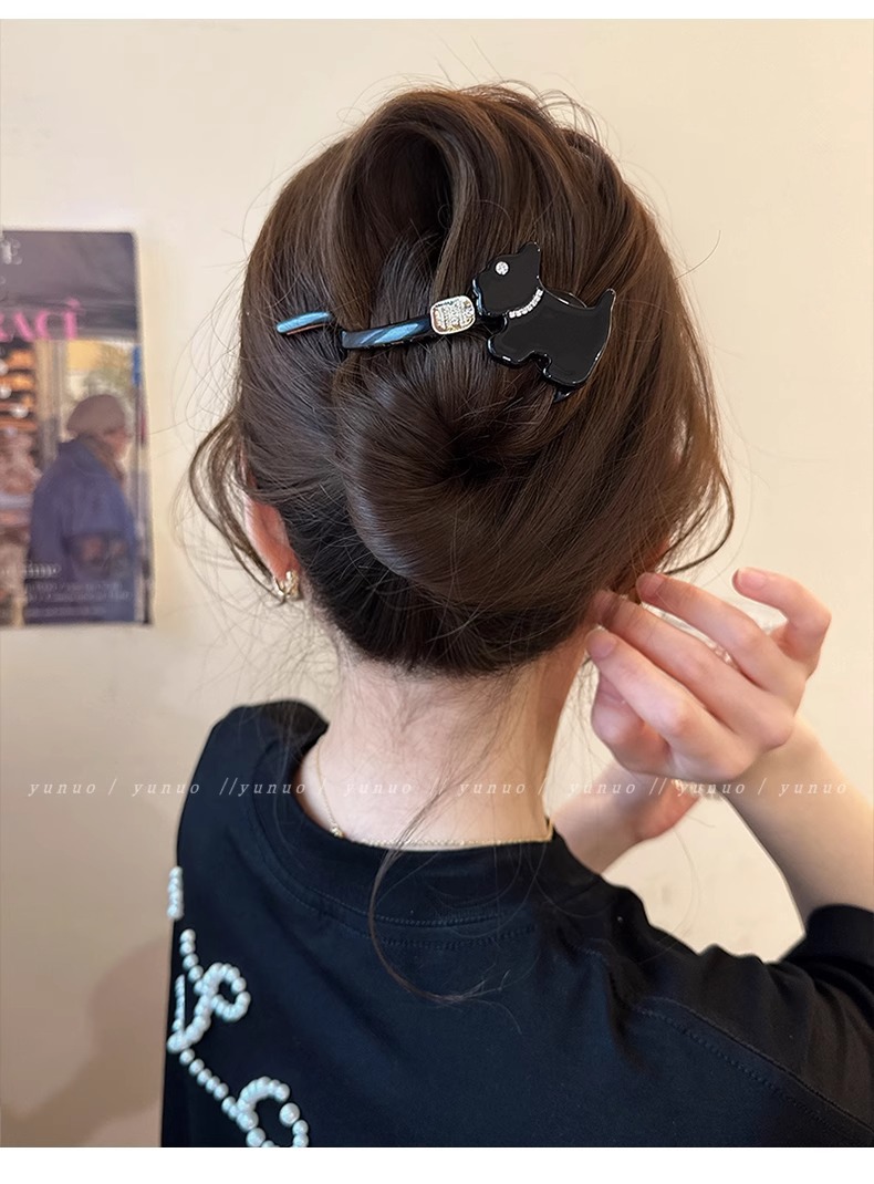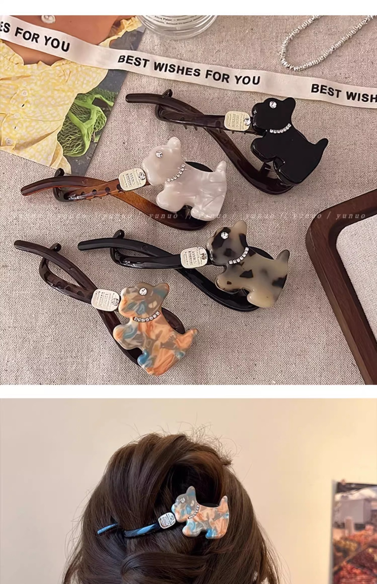 气质醋酸小狗一字扭扭夹女2025新款高级感发夹后脑勺盘发抓夹头饰