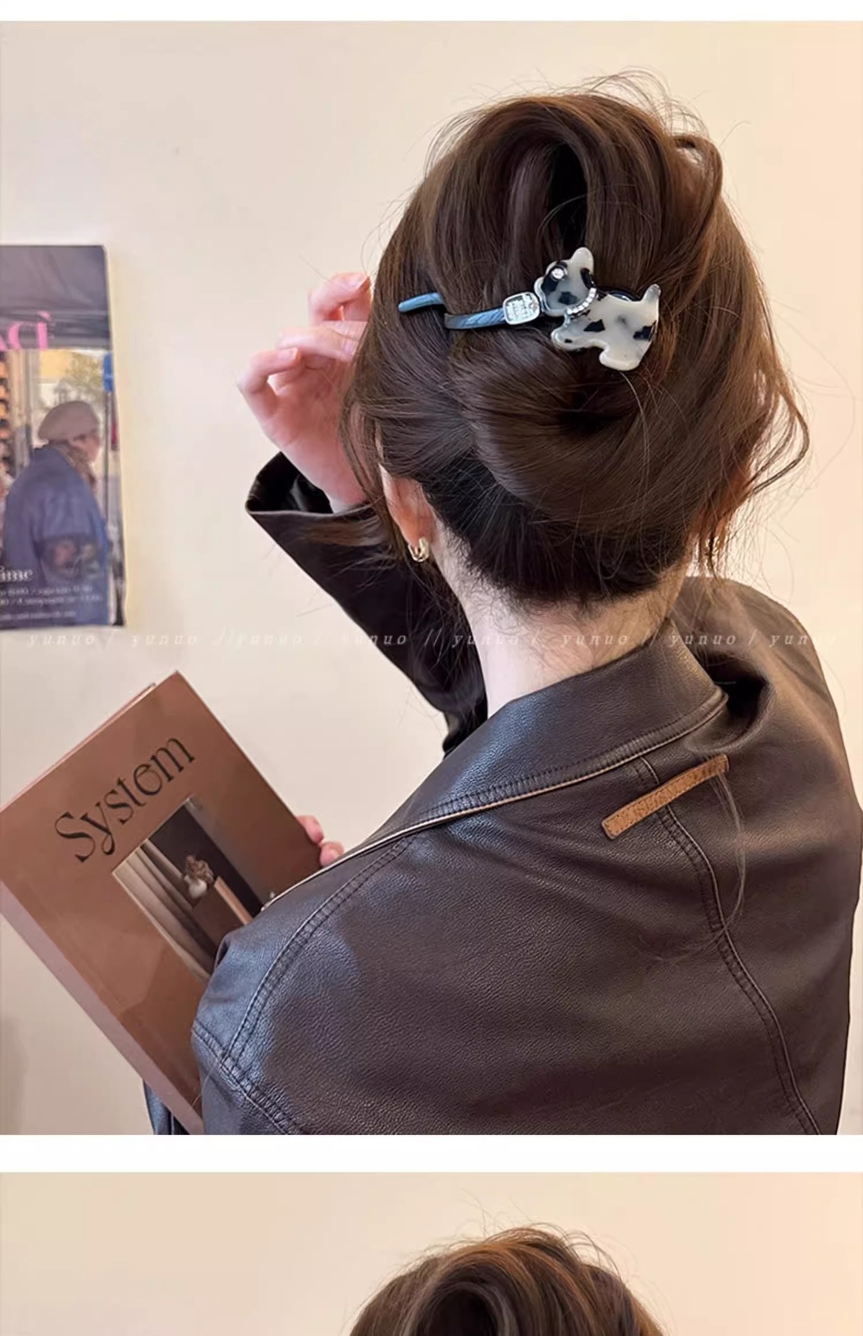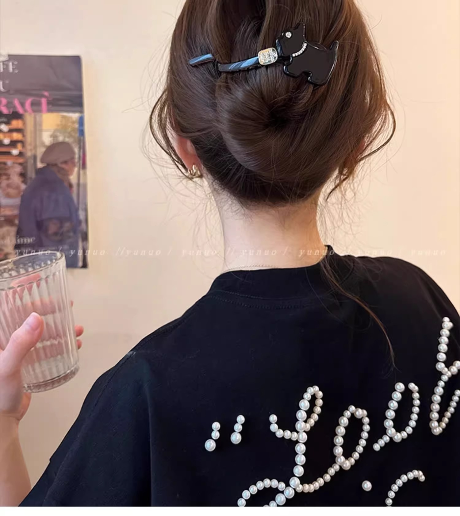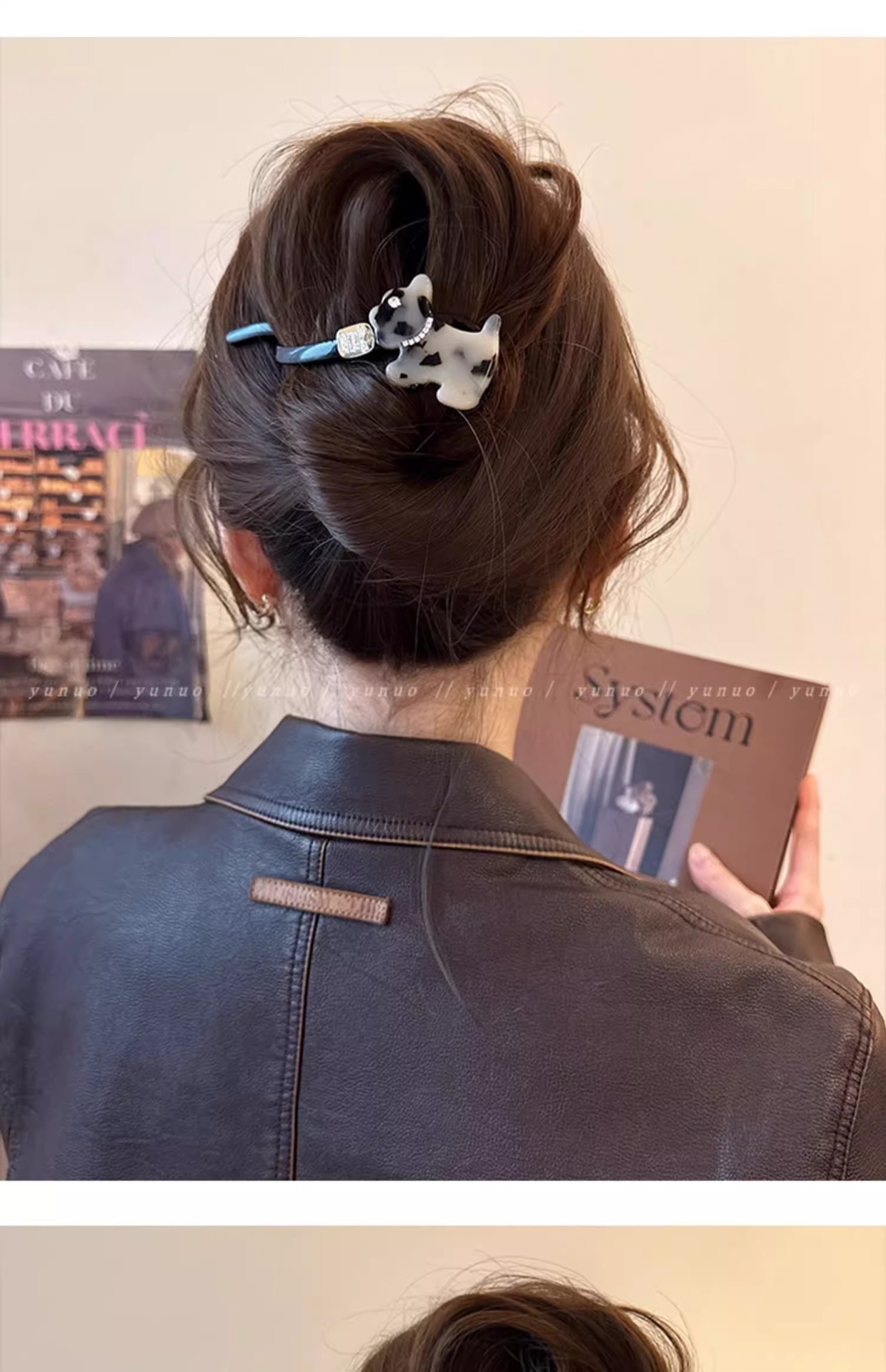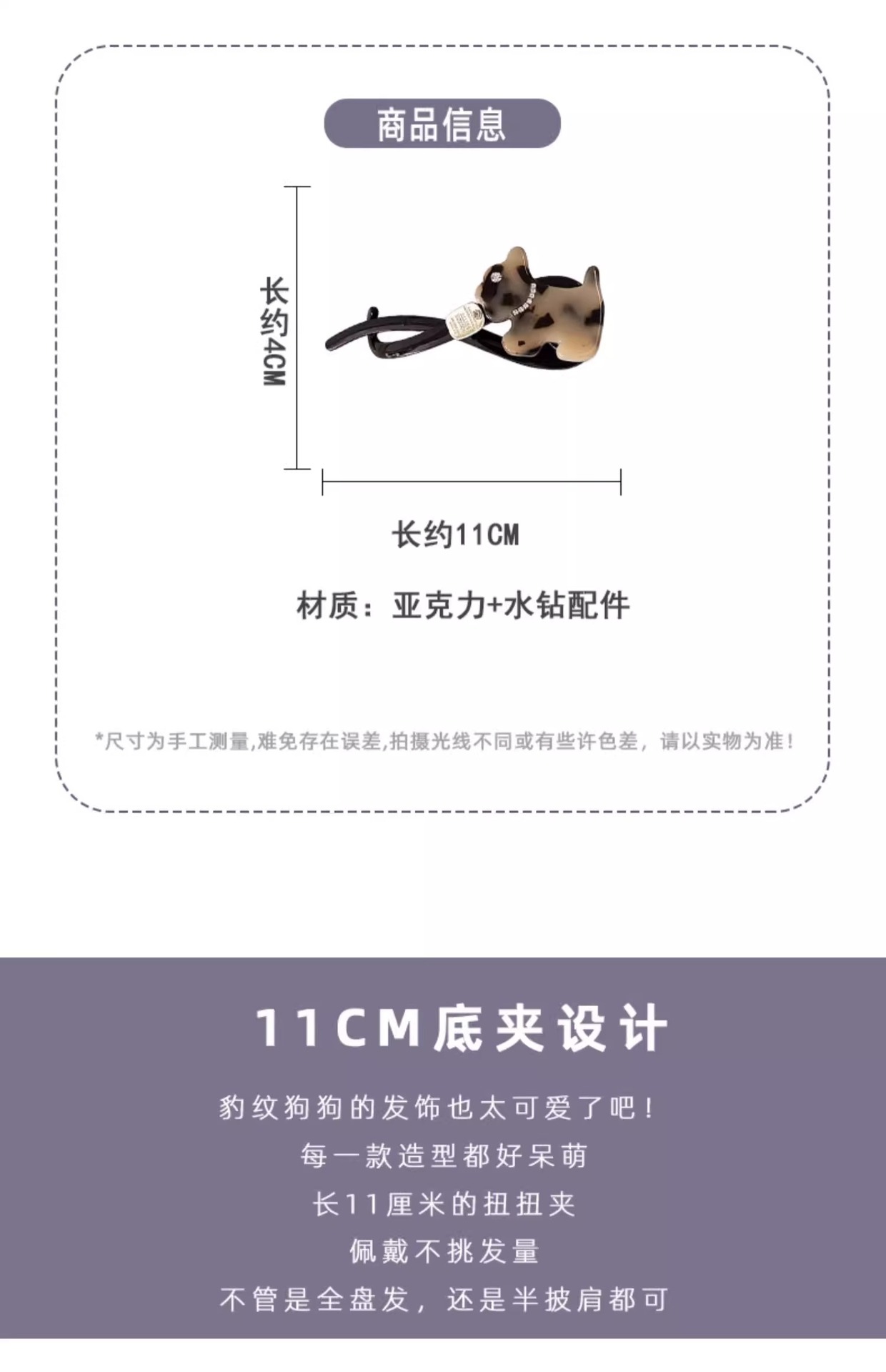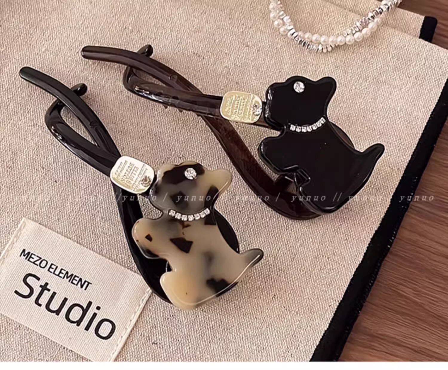 气质醋酸小狗一字扭扭夹女2025新款高级感发夹后脑勺盘发抓夹头饰