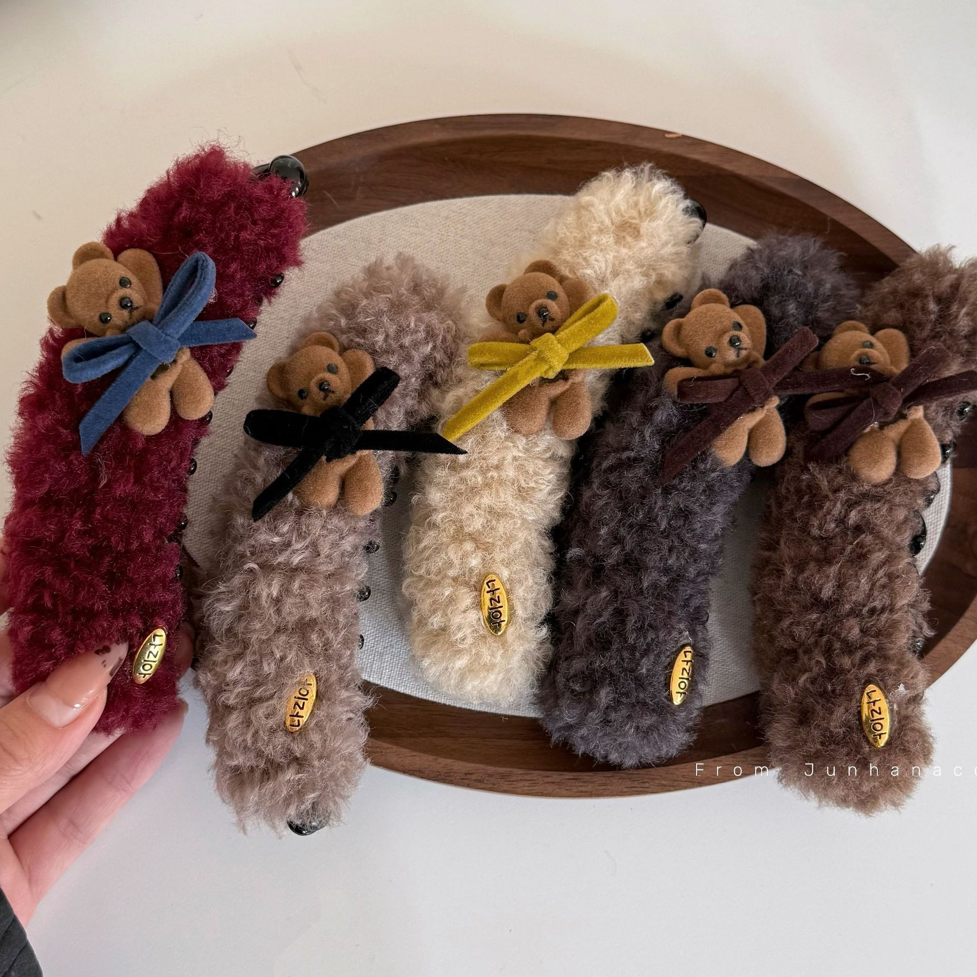 韩版毛绒小熊蝴蝶结香蕉夹女秋冬新款可爱发饰高马尾抓夹发夹头饰
