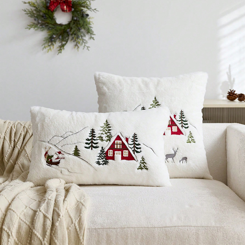 圣诞节日装饰靠枕卧室床头靠垫圣诞刺绣抱枕套靠垫套抱枕套