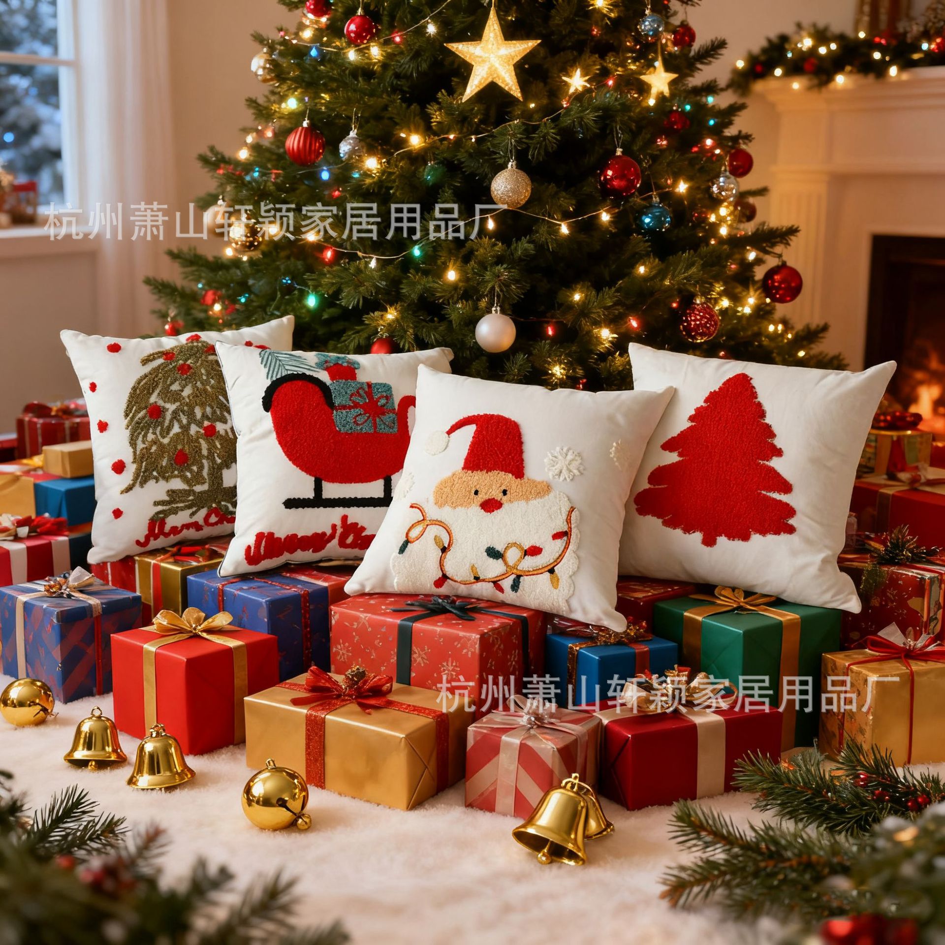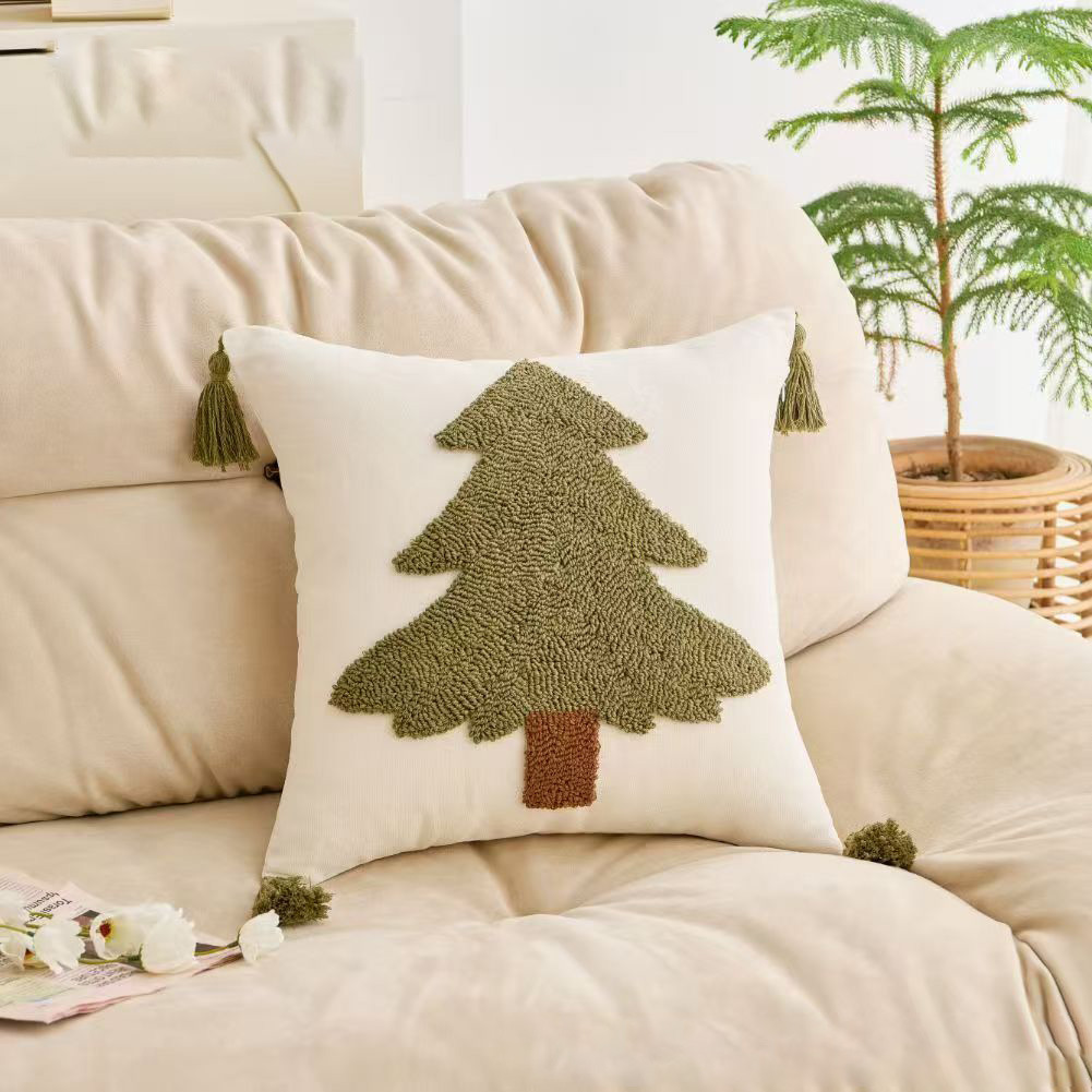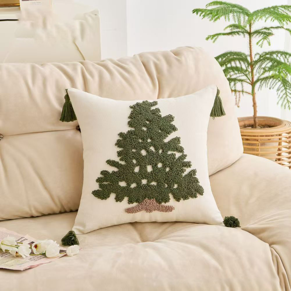 ins涤棉圣诞树家用刺绣靠枕靠垫跨境批发圣诞款圈绒绣花抱枕套