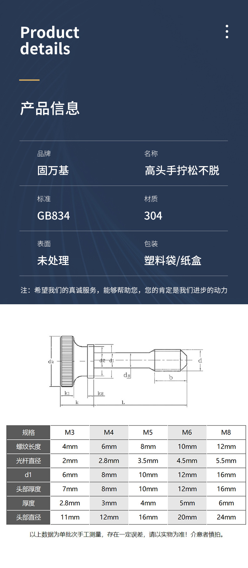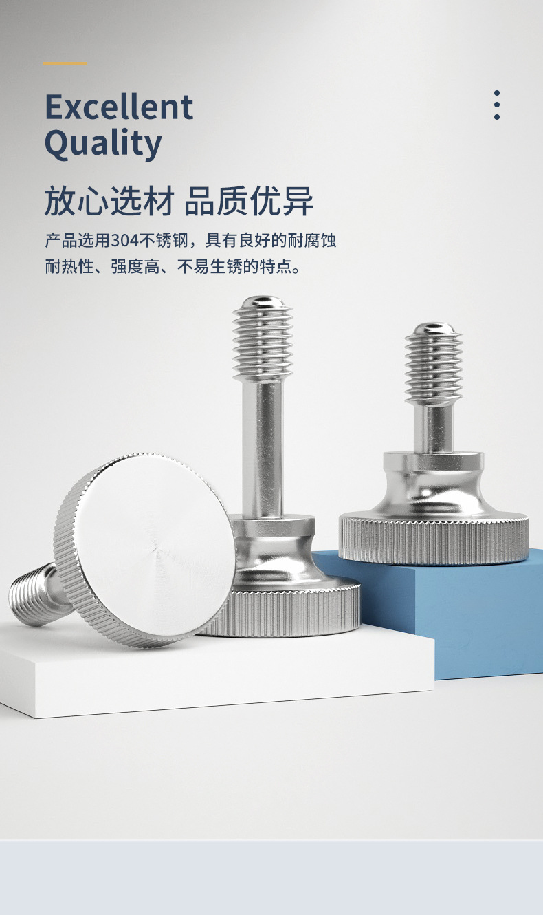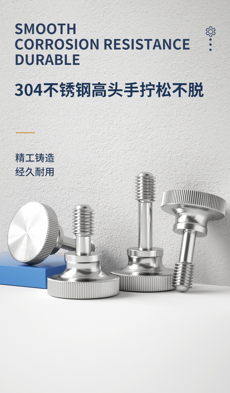 高头松不脱螺丝304不锈钢 手拧台阶螺栓大平头滚花半牙螺钉M3-M8