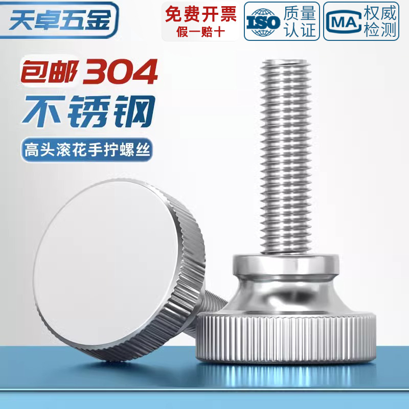 304 ステンレス鋼ハイヘッドローレット手ねじ全ねじスリングショットハンドツイスト調整ステップねじ M2-6M8M10