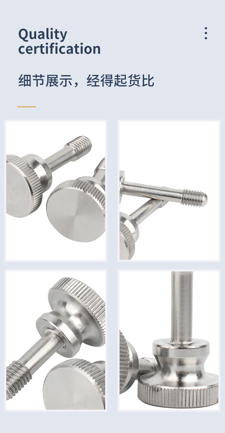 304不锈钢手拧螺丝GB835大圆帽圆形滚花螺栓大平头手扭螺钉m3~m10