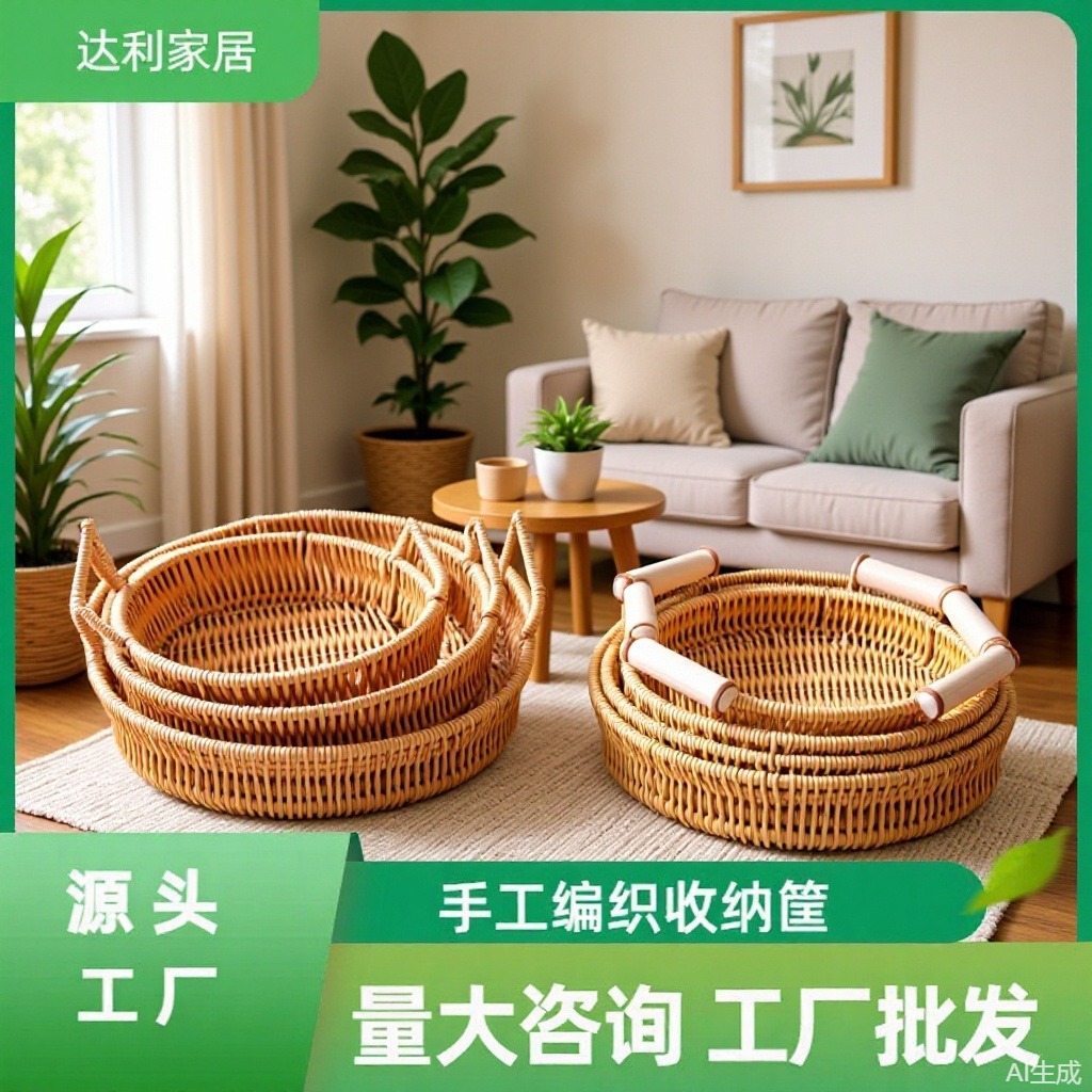 家庭用接着剤籐織物収納バスケットキッチンスパイスフルーツスナック収納手織り収納バスケット