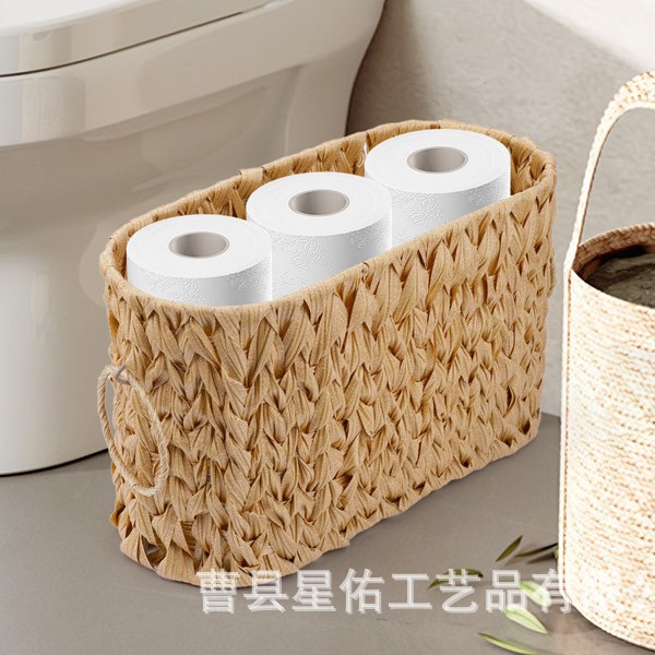 现货编织卫生纸收纳架带内置手柄卫生纸架卫生纸篮浴室配件收纳筐