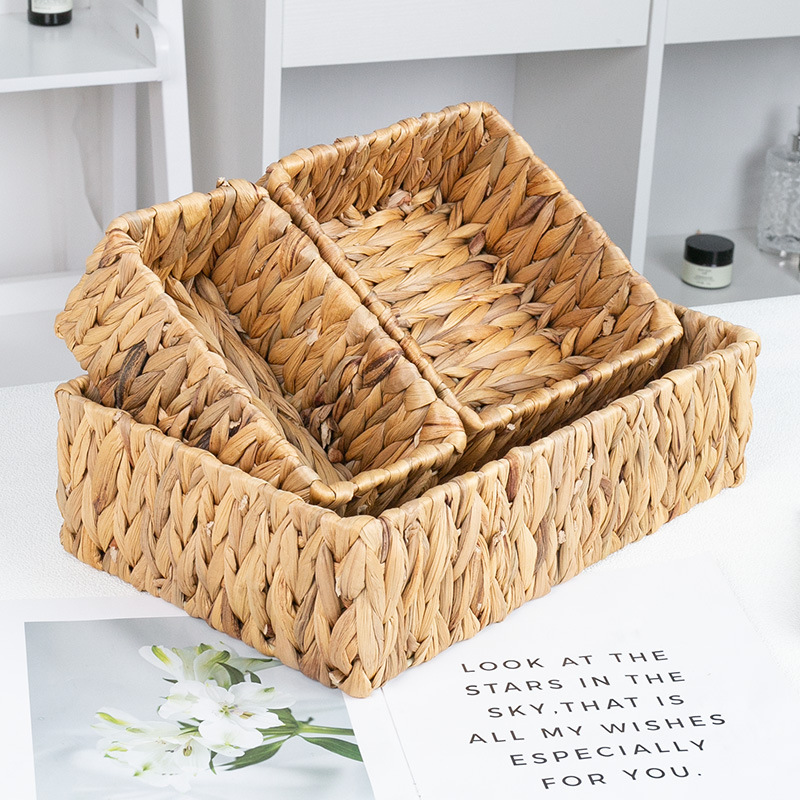 籐編み収納バスケット手作り編みリビングルーム果物野菜家庭用格子キャビネット置物デスクトップ雑物編みバスケット