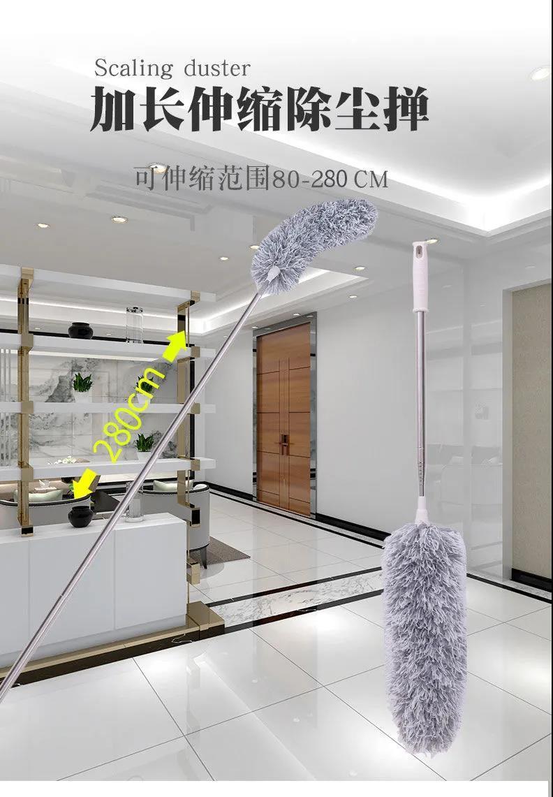 电商家用超细纤维尘掸加长白色除尘掸天花板可伸缩鸡毛天花板