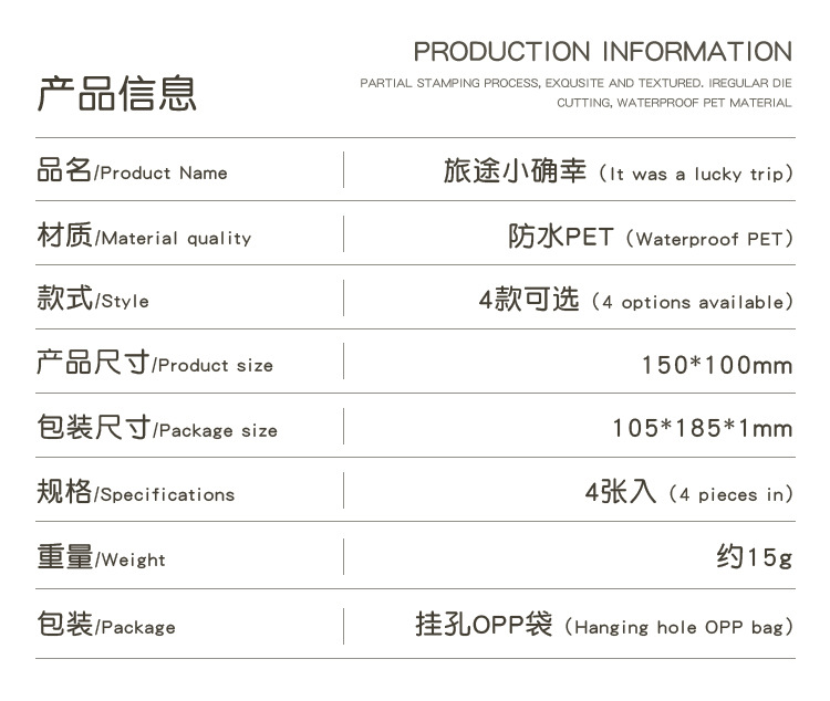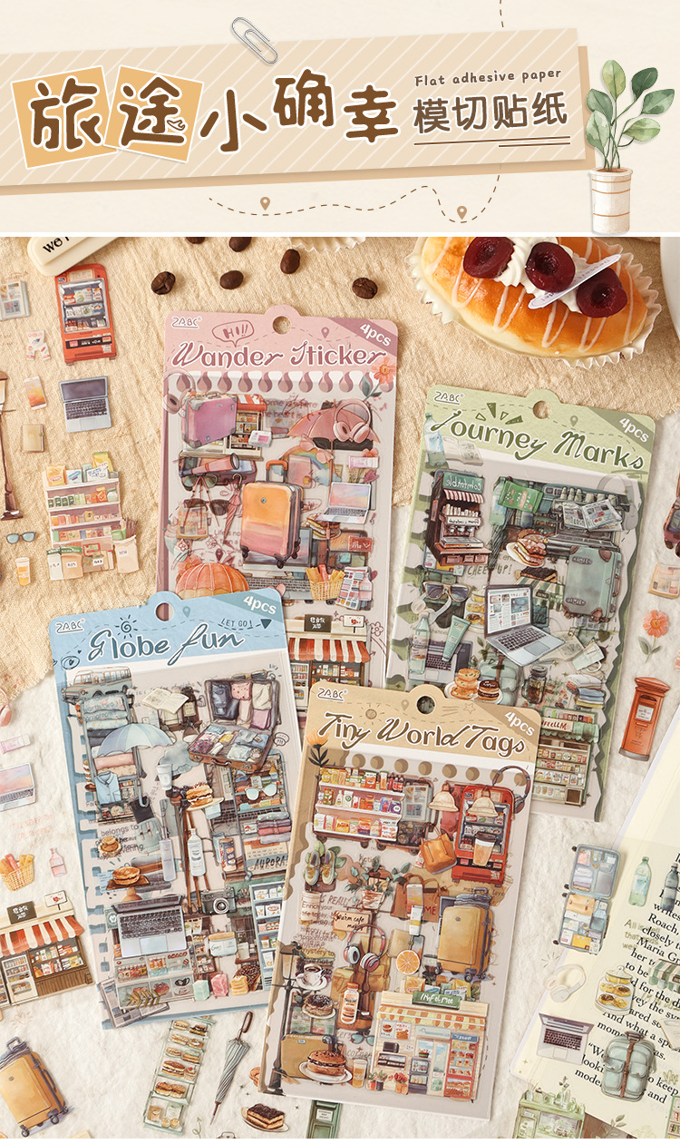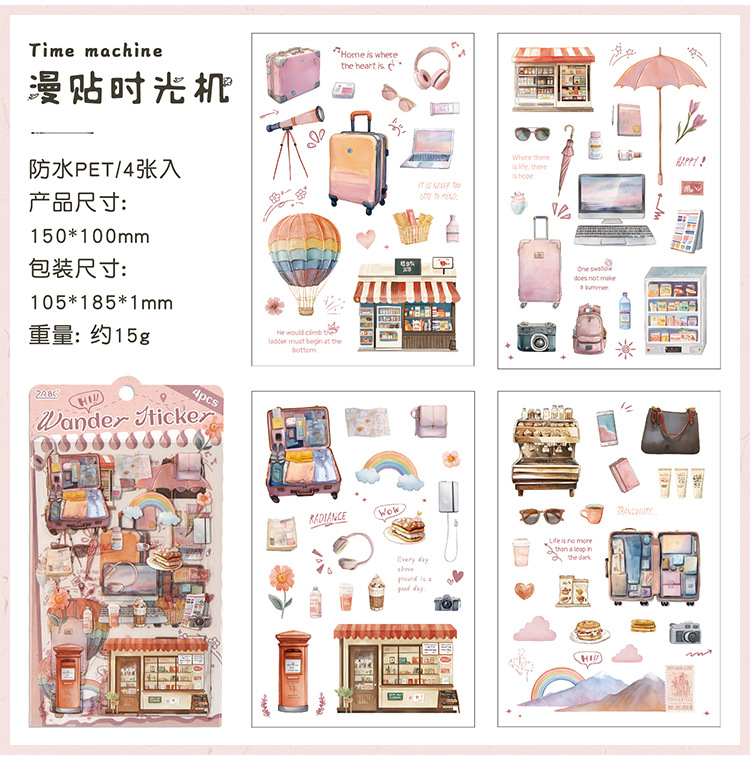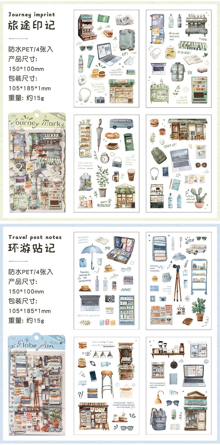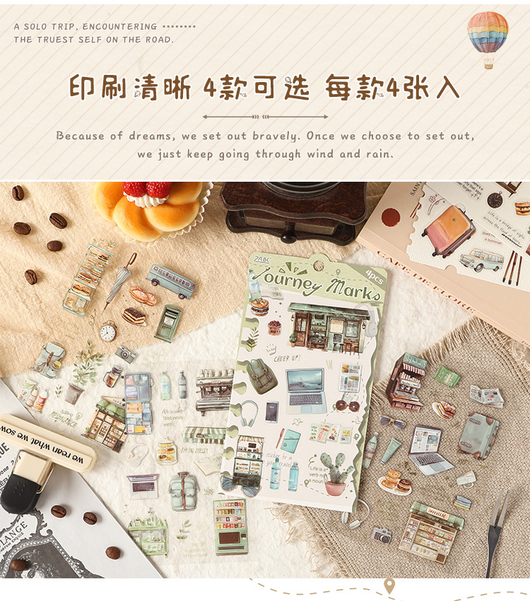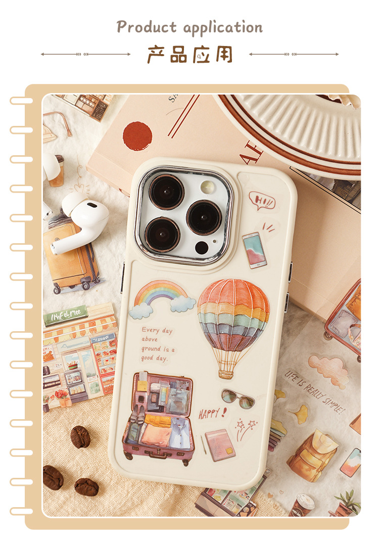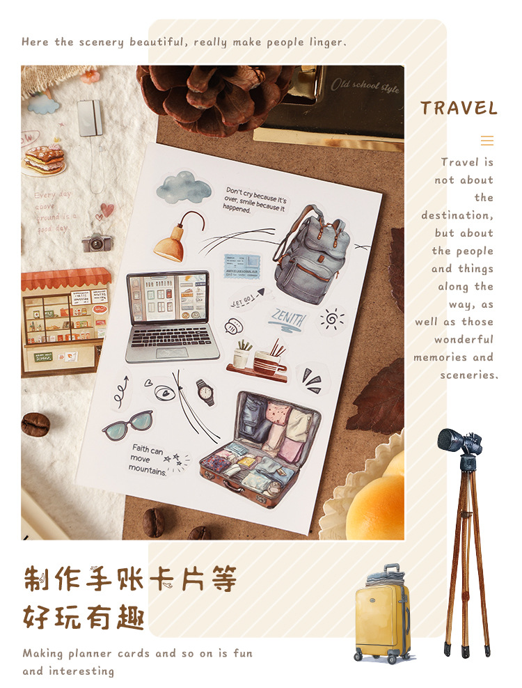 跨境专供旅途小确幸韩系pet创意贴纸旅途手账素材diy模切贴纸批发