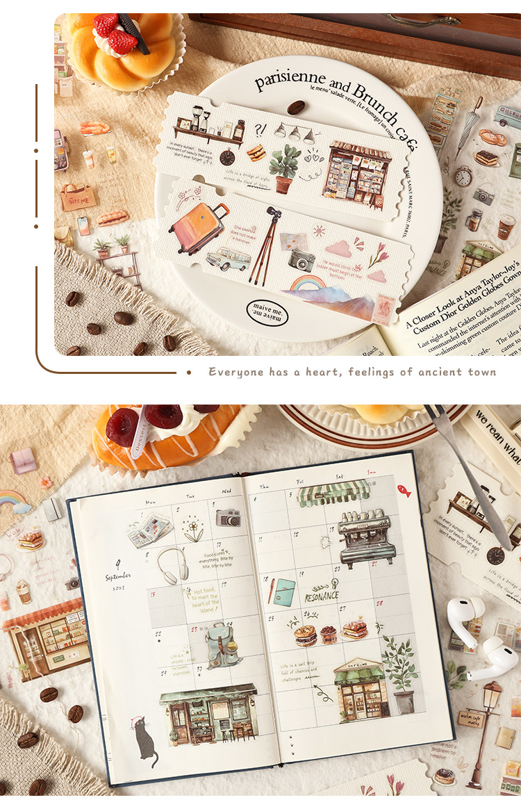 跨境外贸专供新品悠闲时光记复古创意贴纸ins手账素材diy贴画批发