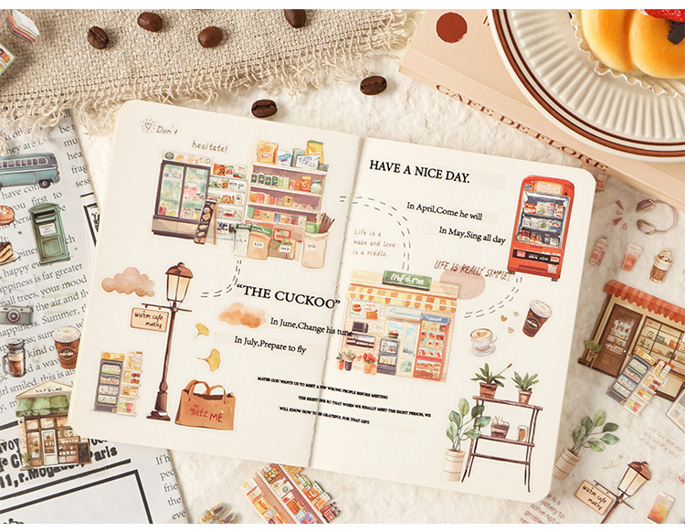 跨境专供生活小筑ins生活拼贴创意贴纸 食物手账素材diy贴画批发