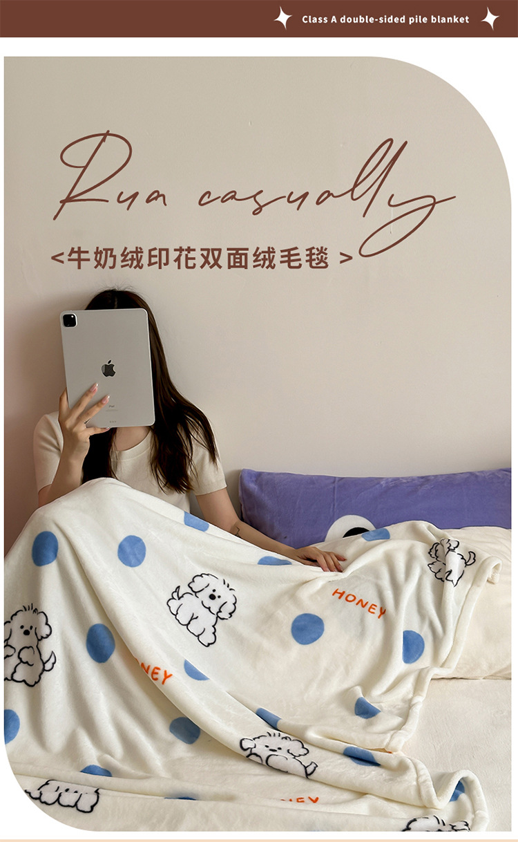 外国貿易かわいい漫画インスタイル両面ミルクベルベットブランケット秋と冬厚みのある多機能カジュアルエアコンベルベットブランケット