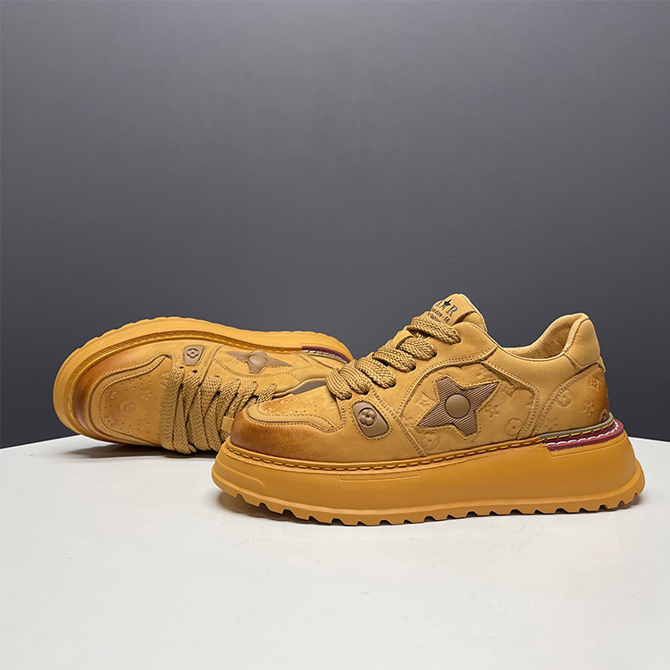 2025年新型男性靴夏通気靴男性運動靴頭層牛革板靴男性新型百合潮靴