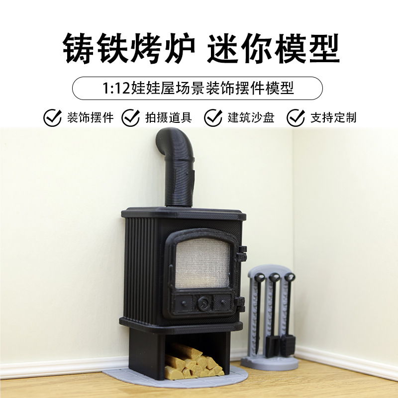 1:12娃娃屋微缩场景摆件迷你铸铁壁炉模型老式烧柴壁炉微缩家具