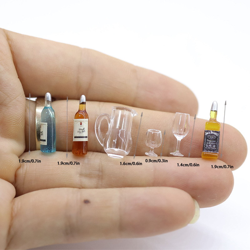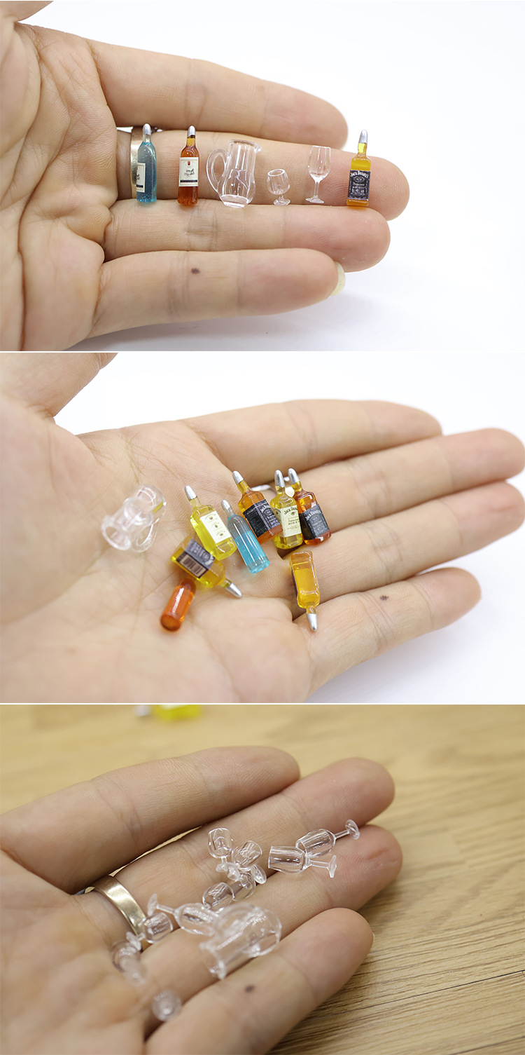 Dollhouse娃娃屋场景配件装饰品红酒瓶迷你高脚杯微缩食玩模型