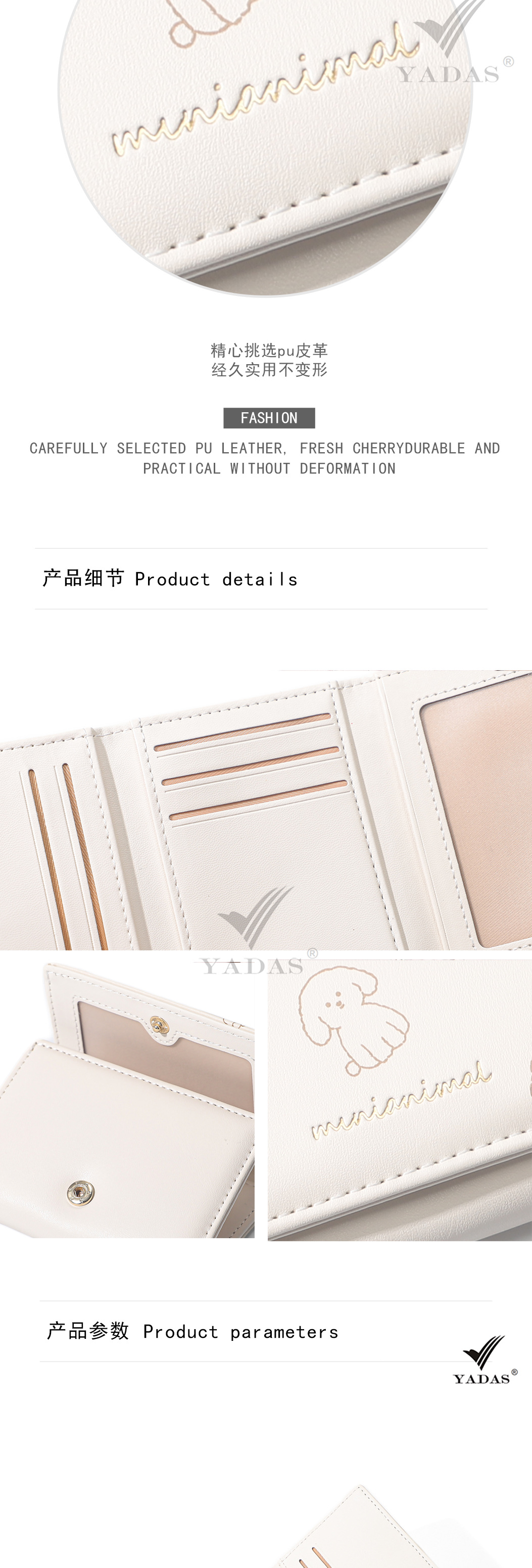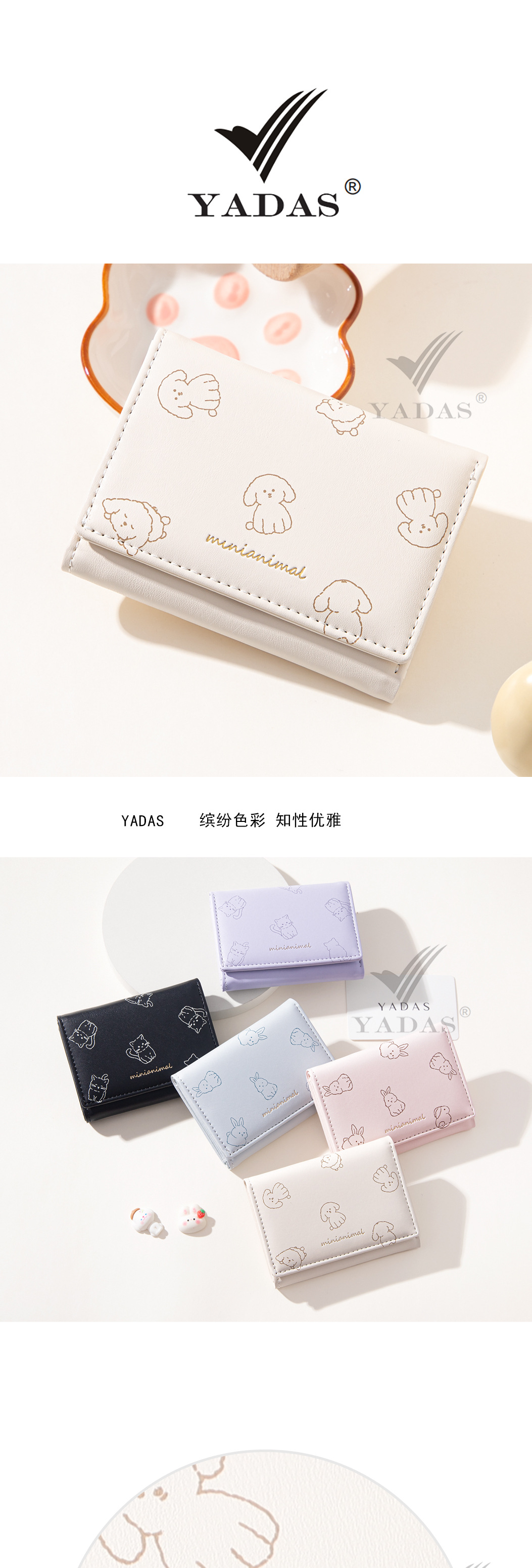 小香女士卡包 YADAS高级PU皮短三折零钱包wallet
