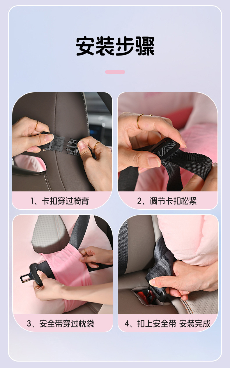 子供の車は枕を抱いて首を絞めて外に出るのを防ぎます。
