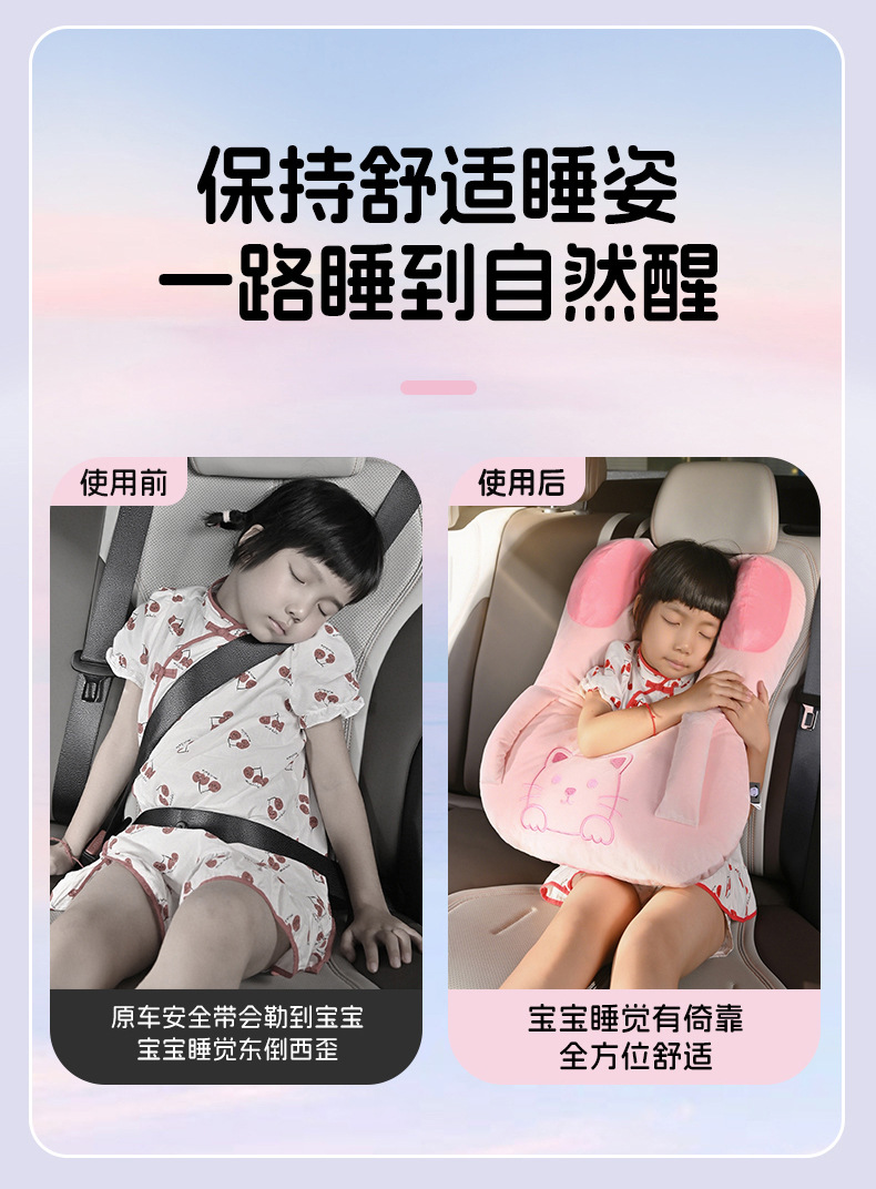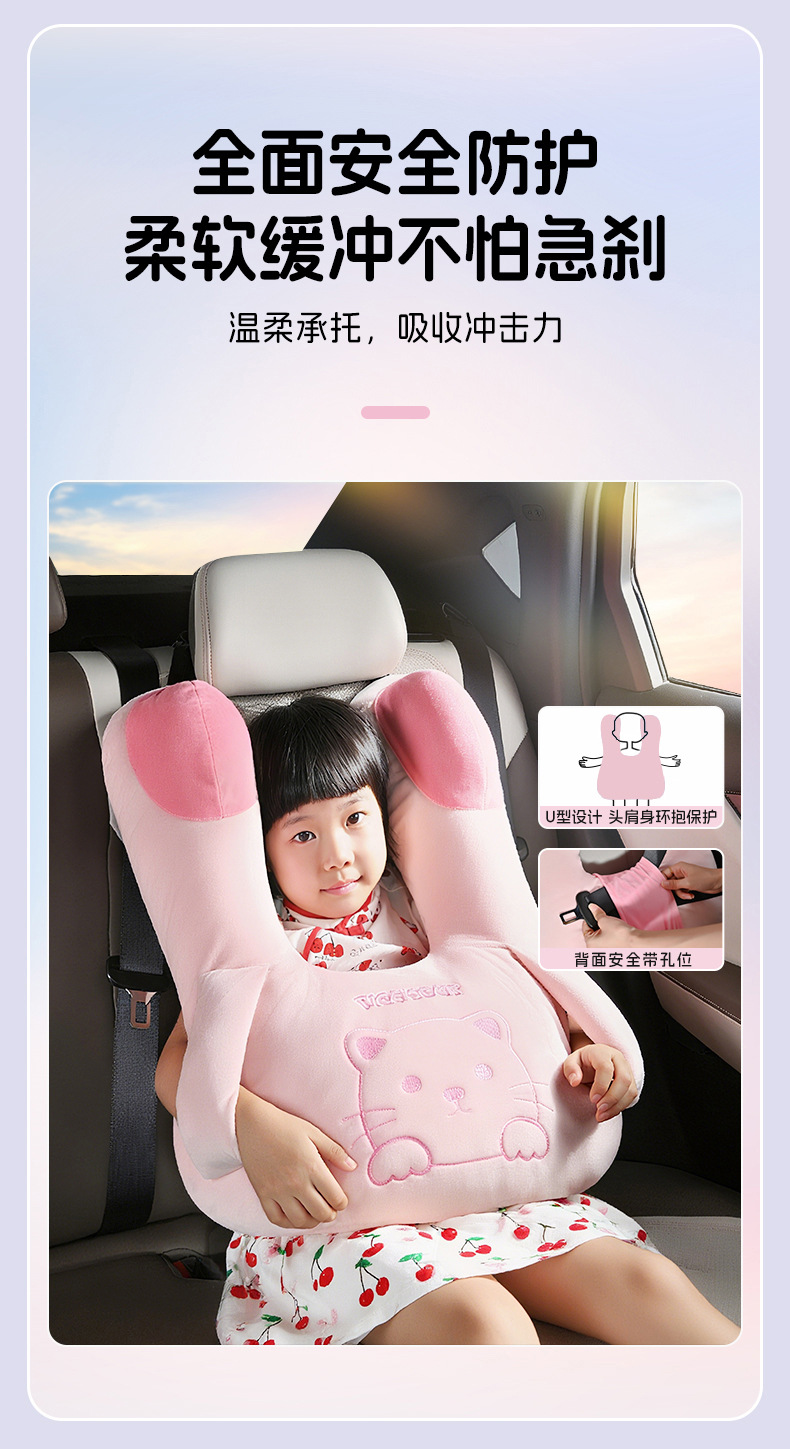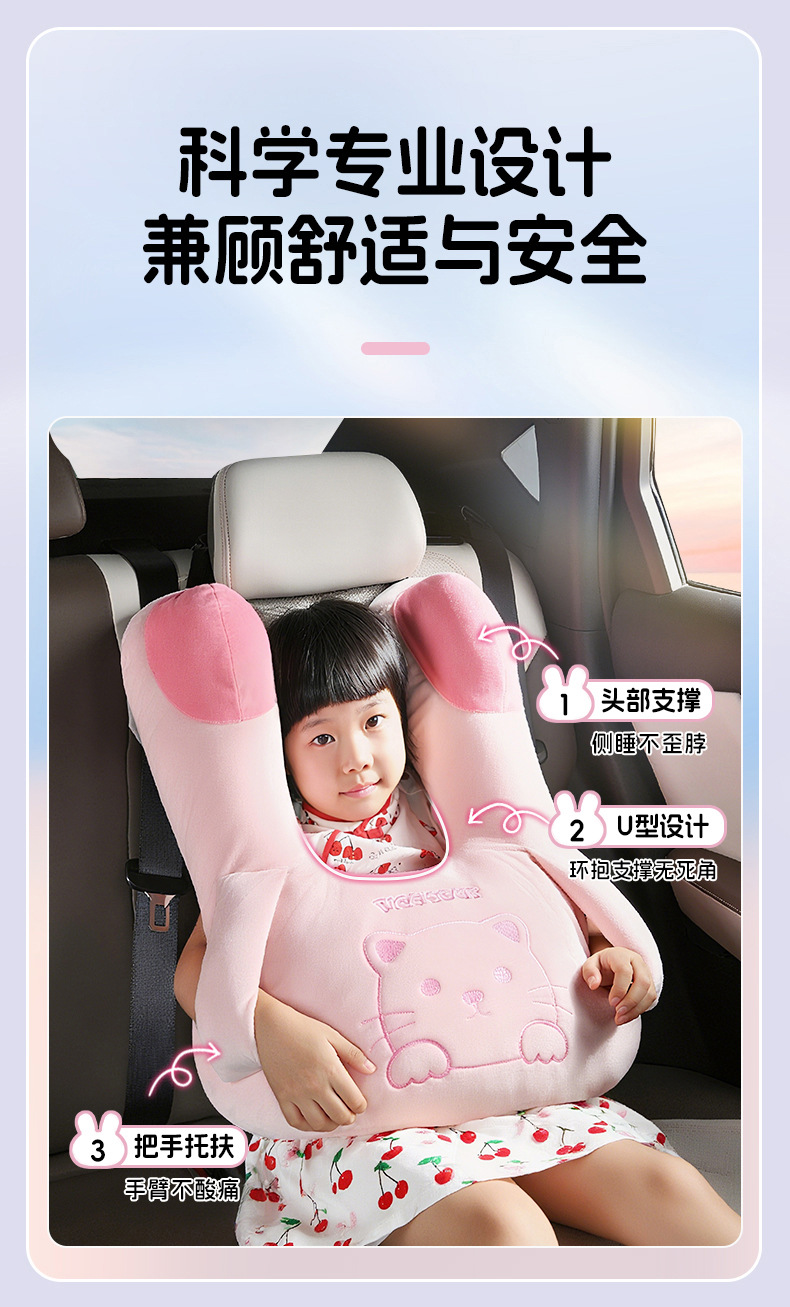 乔氏儿童抱枕车载睡觉神器汽车后排车内坐车护颈车上睡枕A类面料