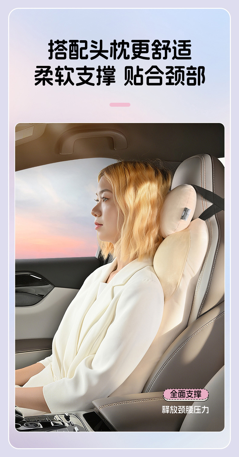 愛車屋の車の腰はヘッドレストのクッションに寄りかかって車を運転して腰の神器のシートの腰を保護します。