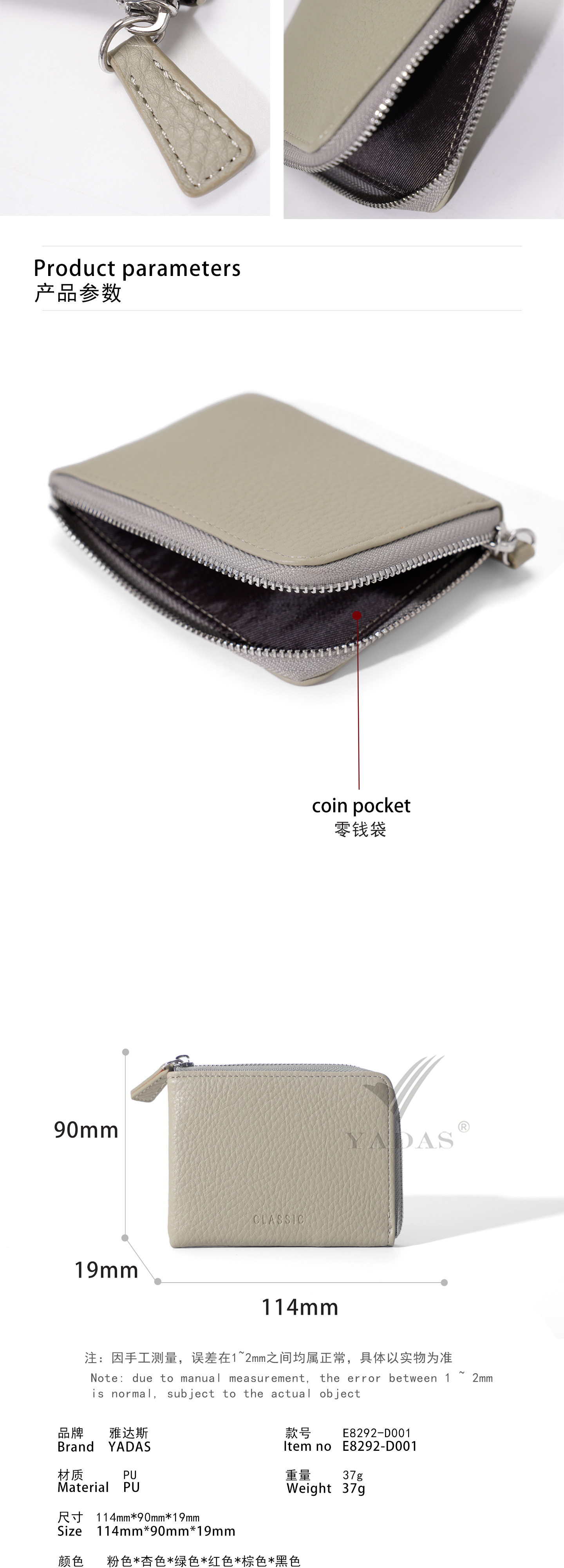 YADAS新型ジッパーミニファッション質感爆裂純色マルチカード位女性オルガンPU卸売りカードバッグ