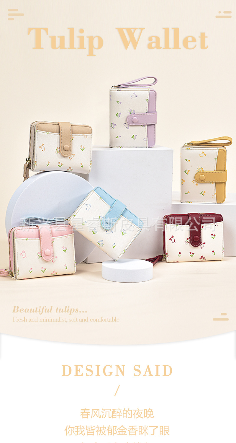 2025新款郁金香蝴蝶结女士钱包ins大容量短款拉链学生零钱包