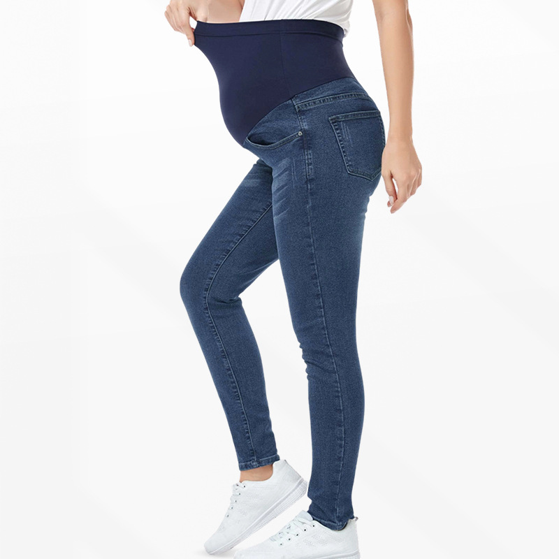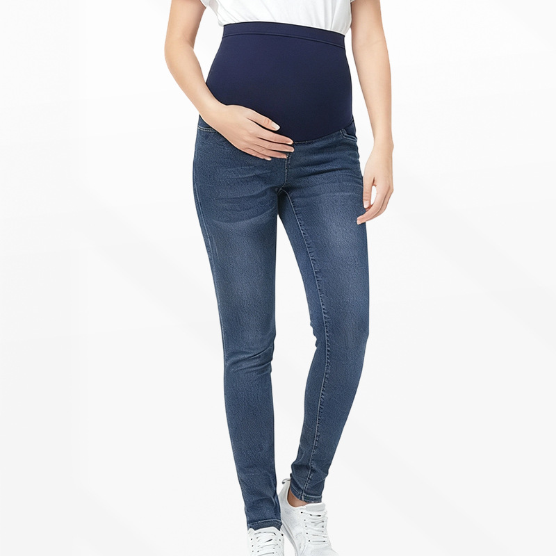 欧米風妊婦用ハイウエストデニムパンツ、おしゃれなタイトフィット、伸縮性のある秋冬モデル、越境貿易マタニティウェア