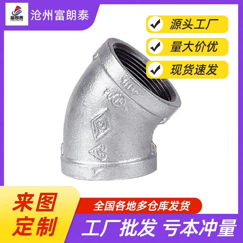 消防亜鉛メッキ鋼管継手 45度エルボ 25熱間亜鉛メッキ内ネジ鉄エルボ 4分 6分 1インチ