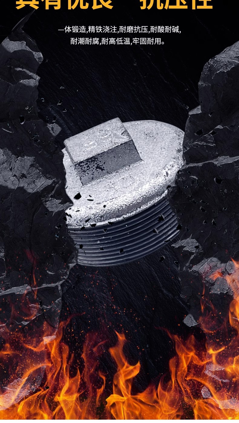 水暖消防外丝堵管件 烤镀堵帽 4分6分1寸玛钢堵头管帽管堵堵头