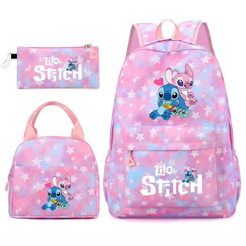 跨境新款史迪仔中小学书包三件套防水双肩包户外旅行可印花背包