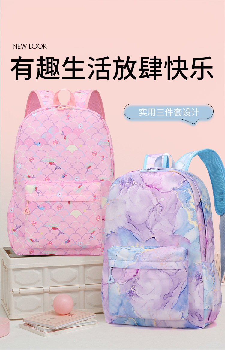 跨境新款渐变色时尚双肩包午餐包笔袋 初高中学生书包3件套背包