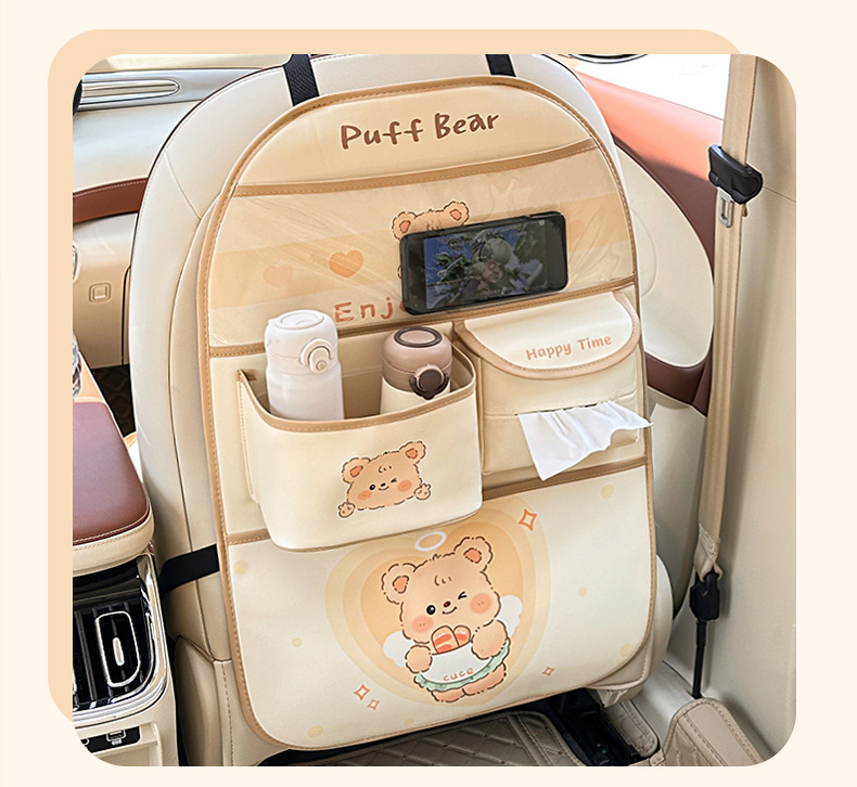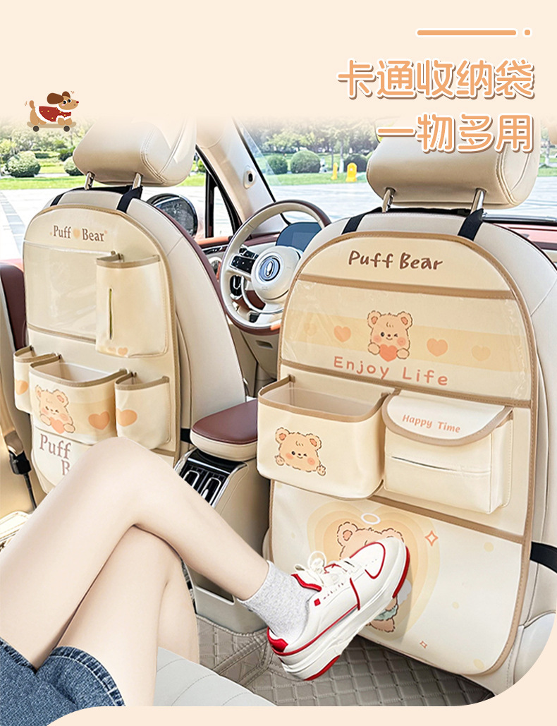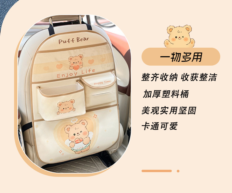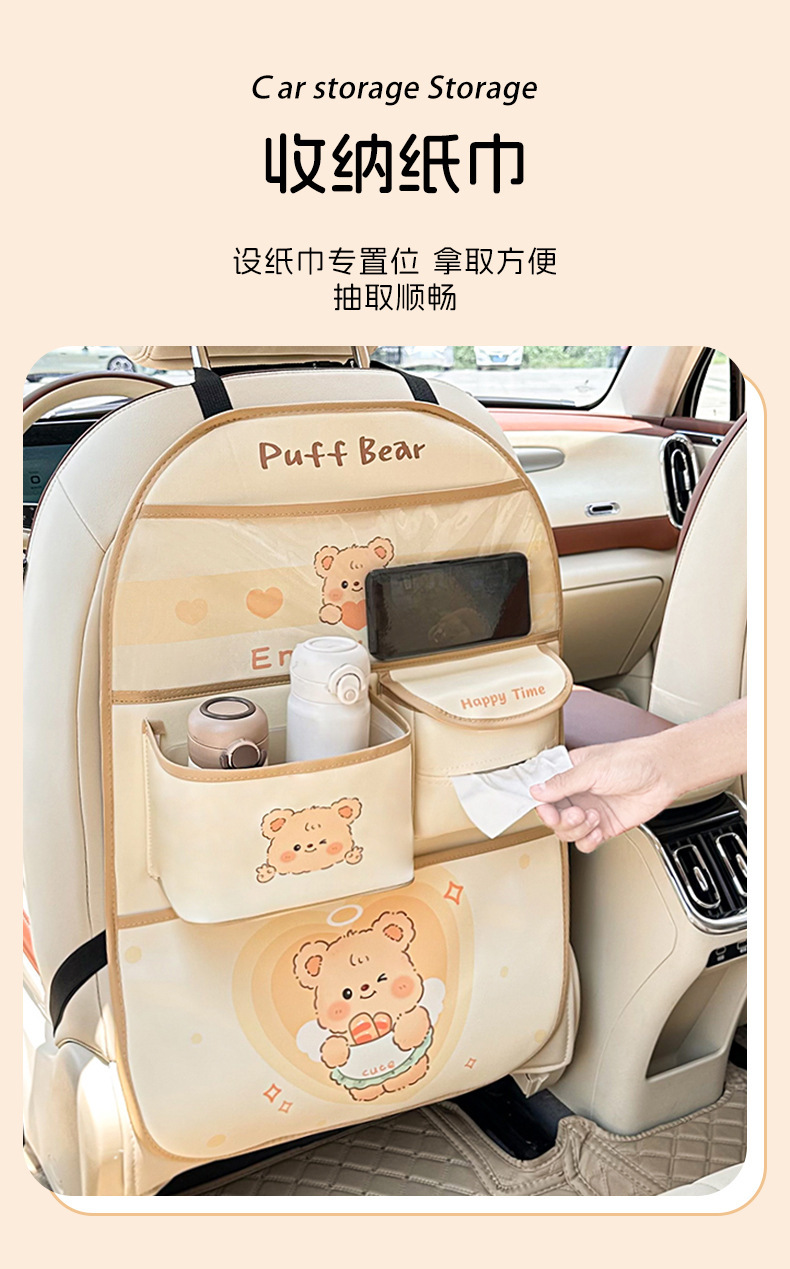 カーシート后背収纳袋可爱いチューリップくまうさぎ車載置物掛け袋多机能食卓置物ケース