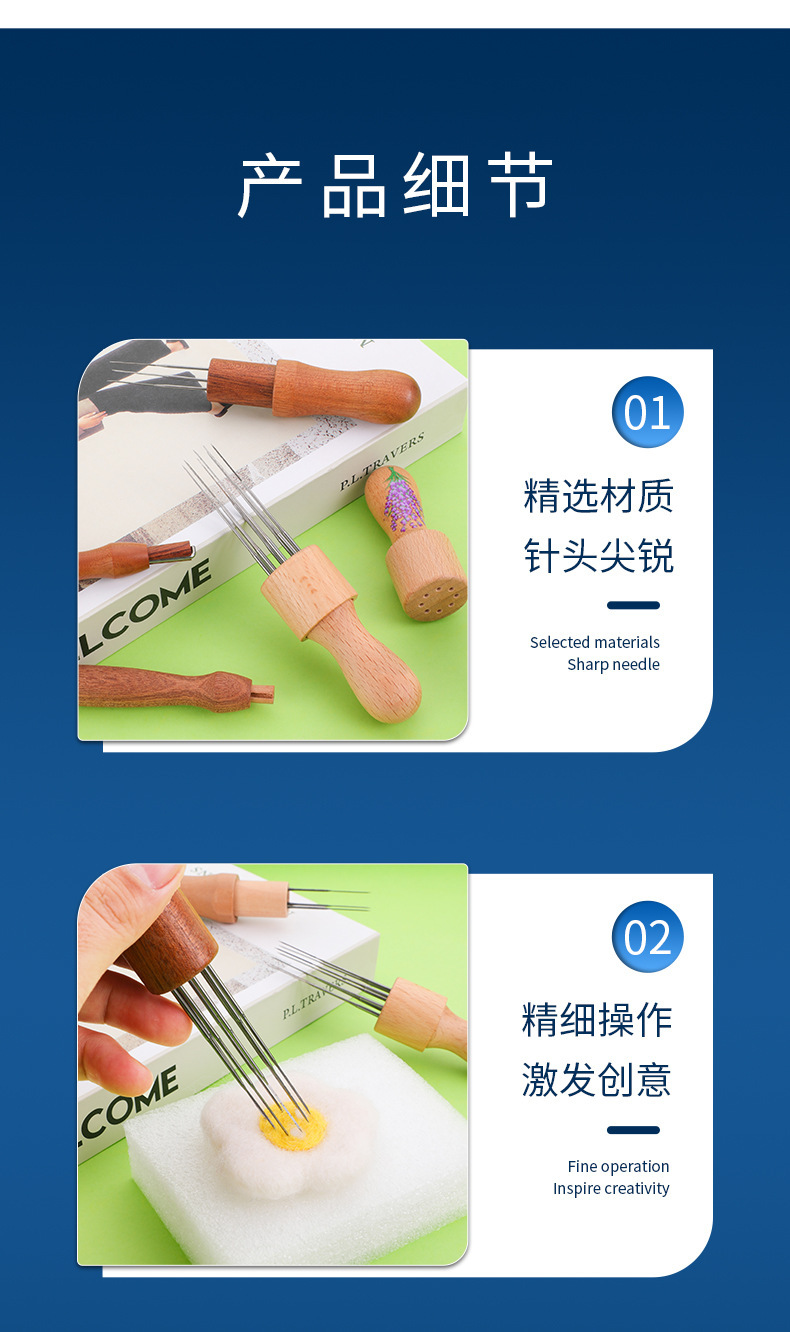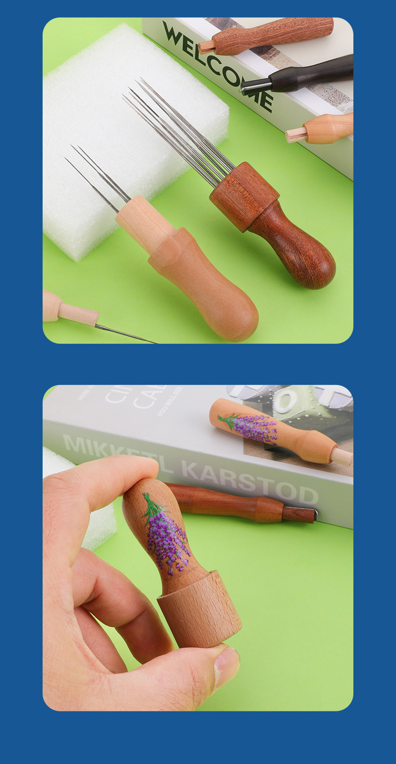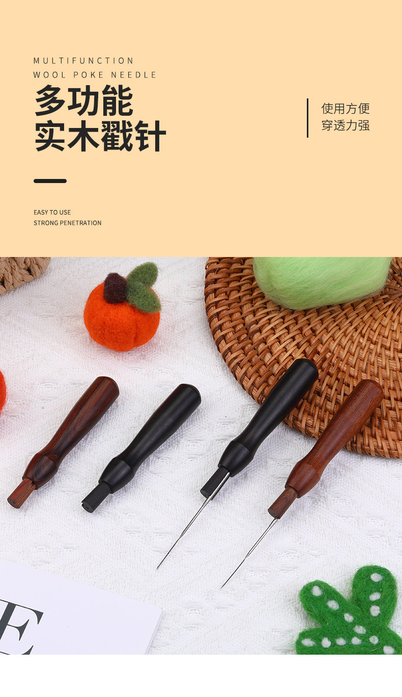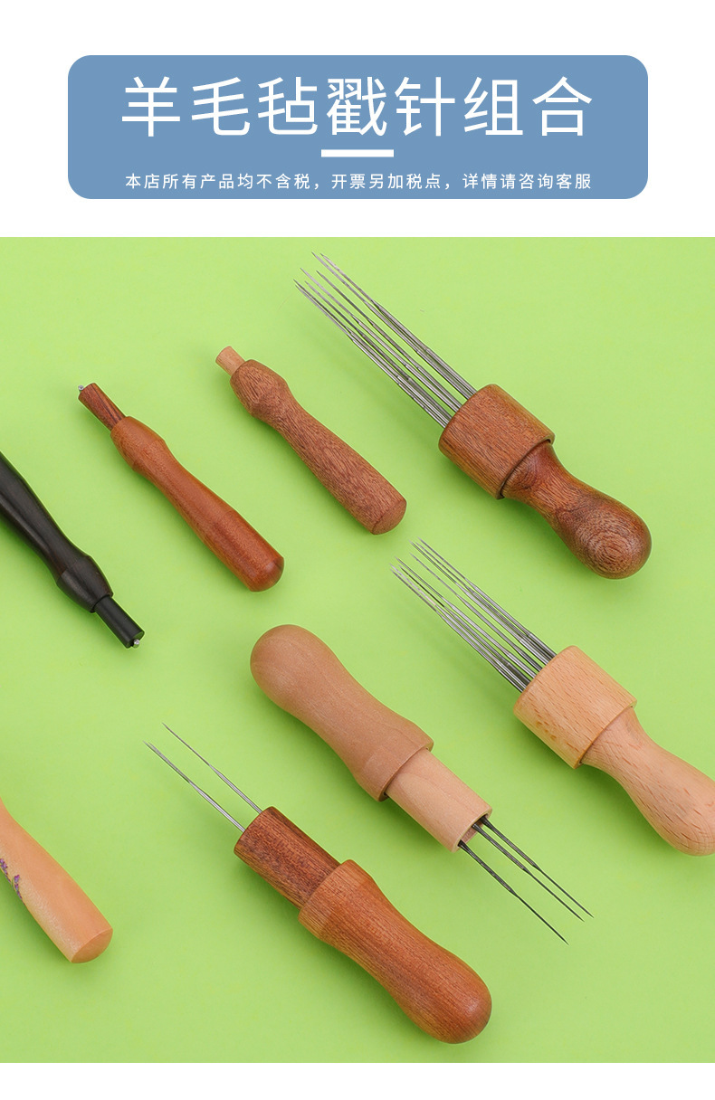 跨境新款酸枝木檀木羊毛毡戳针 diy戳戳乐木柄戳针1针3针8针刺针