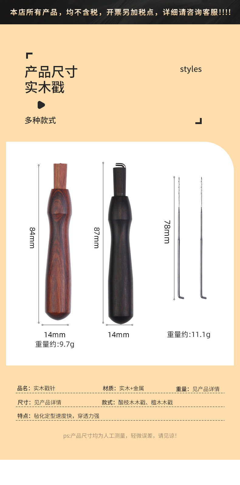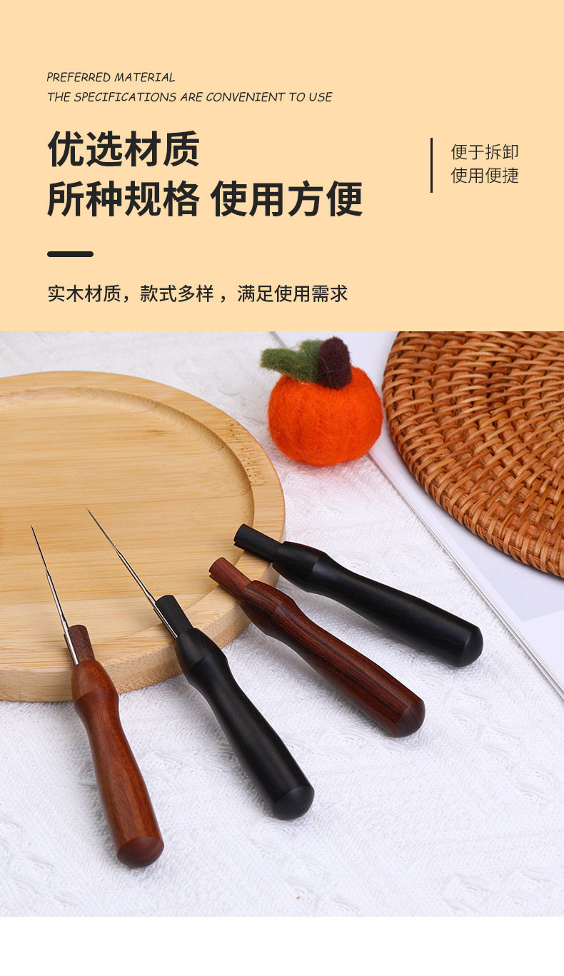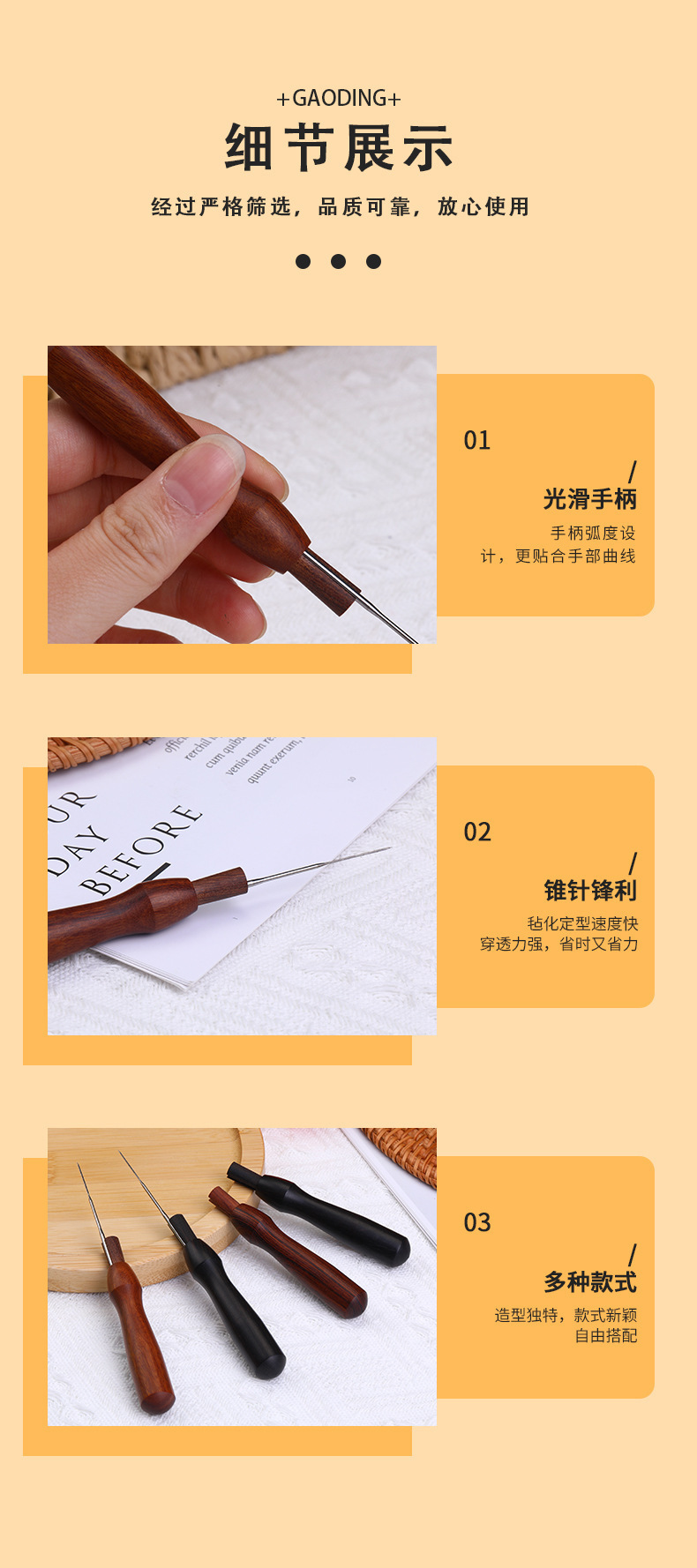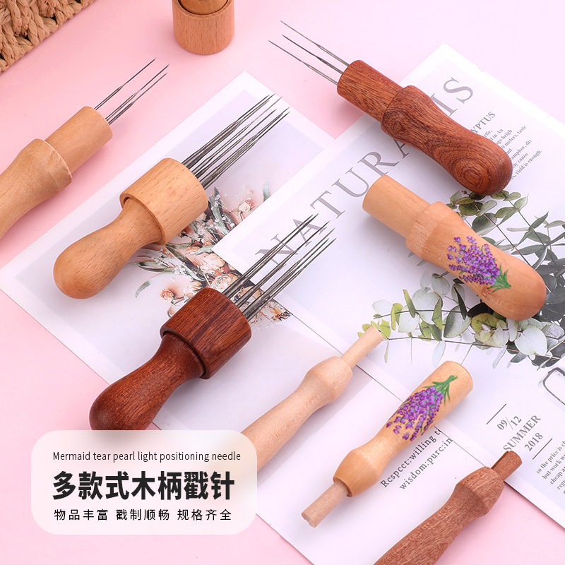 跨境新款酸枝木檀木羊毛毡戳针 diy戳戳乐木柄戳针1针3针8针刺针