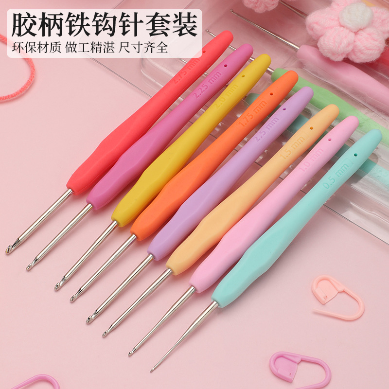 クロスボーダー粘着ハンドル鉄かぎ針編みセーター針カラーキャンディレース針金属ウール針 diy 編み物ツール卸売