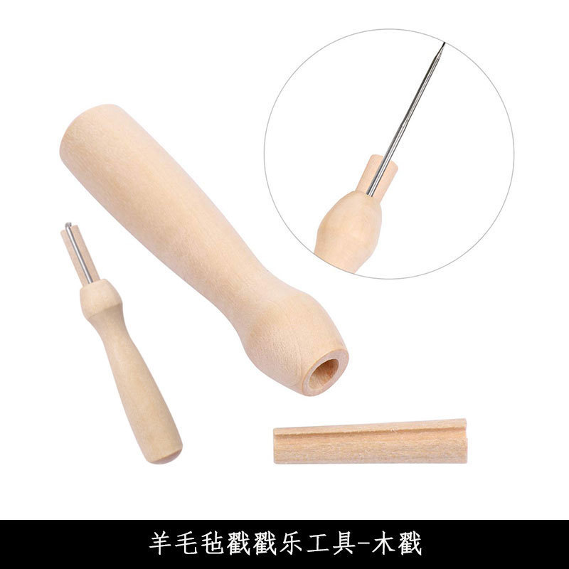 羊毛フェルトスタンパー(針付きウッドカラーウッドスタンパー) 手芸用フェルトニードルペン 木製パンチニードルホルダー