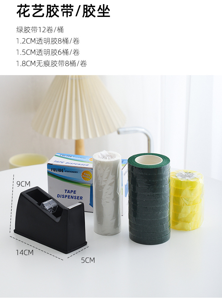 七色堇 胶座花艺胶布绿胶带无痕胶带纸绿色花手工diy装饰材料婚车