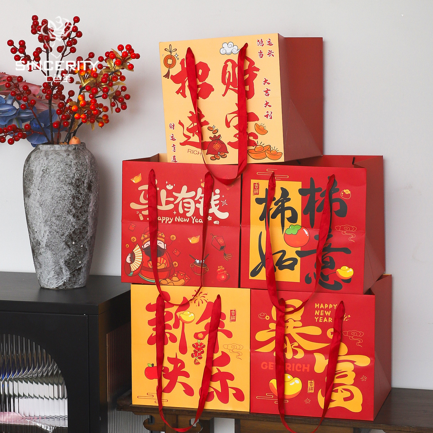 七色堇新年年宵创意手提袋鲜花包装福桶手拎袋子花艺花店礼物礼品