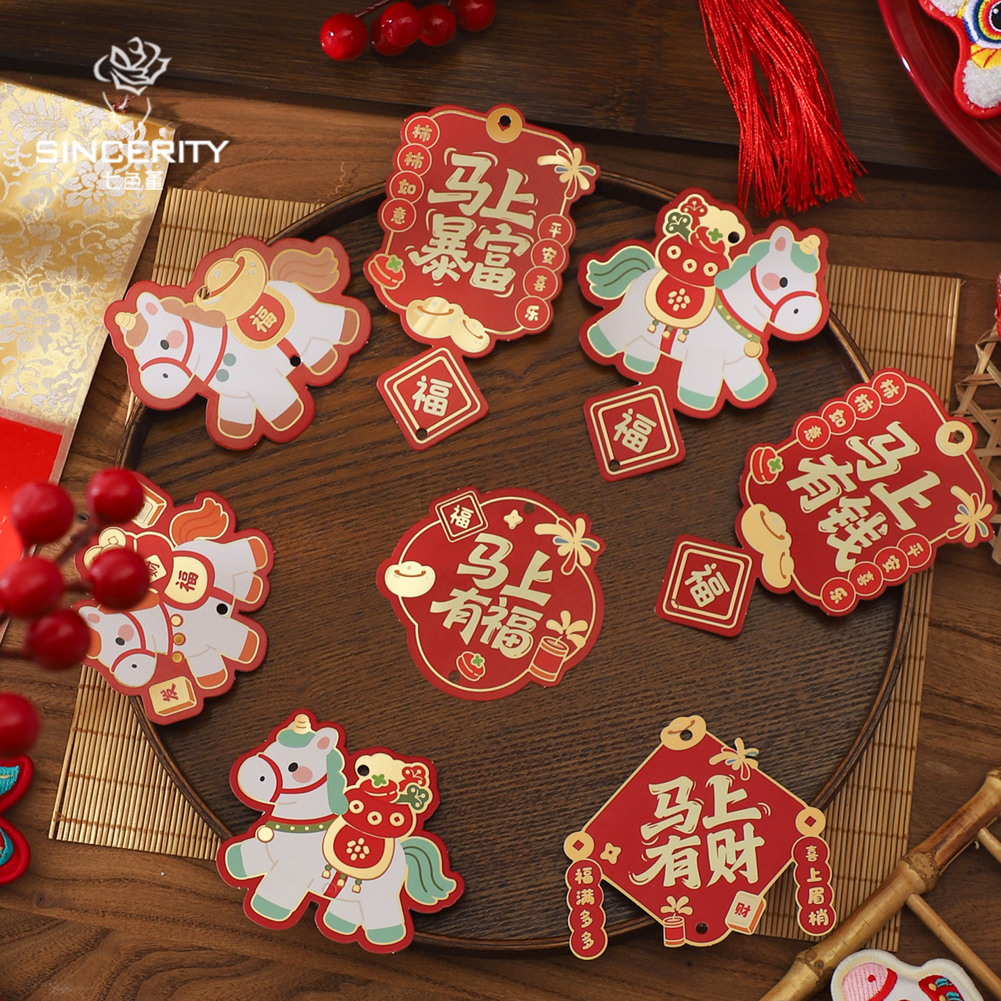 七色堇马年卡片3年宵新年挂卡仿真花福桶礼盒挂卡装饰卡花艺卡片