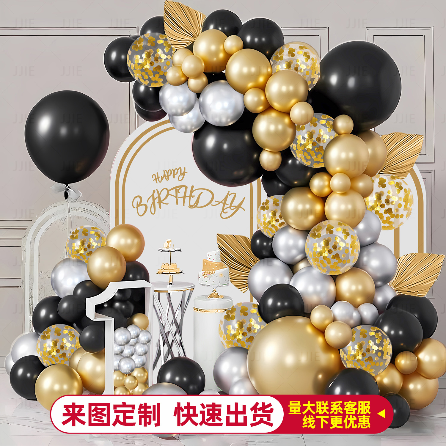 跨境亚马逊外贸爆炸红黑金黑气球链套装生日布置毕业婚礼庆典
