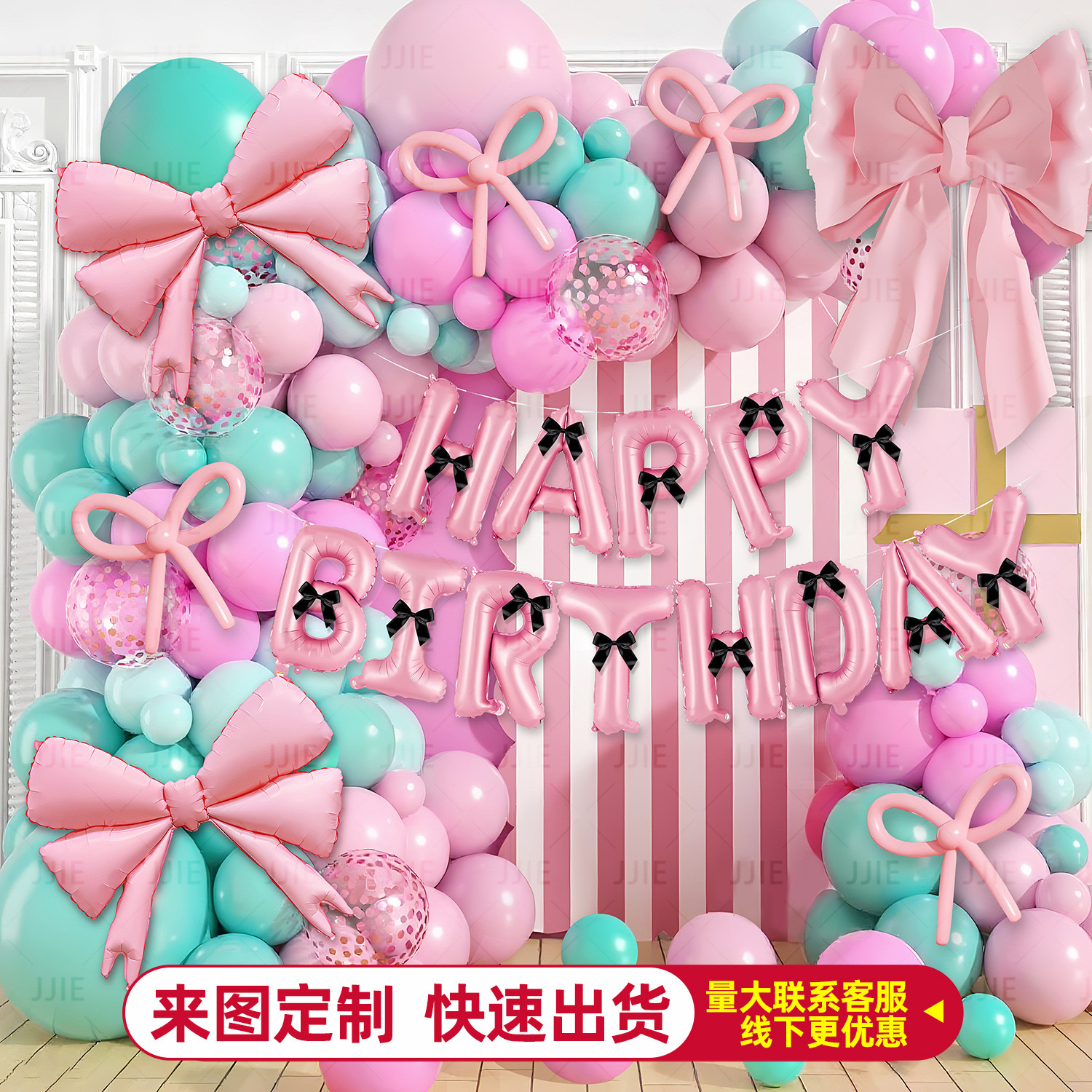 跨境蝴蝶结气球链生日气球布置装饰派对套餐套装高级感场景用品