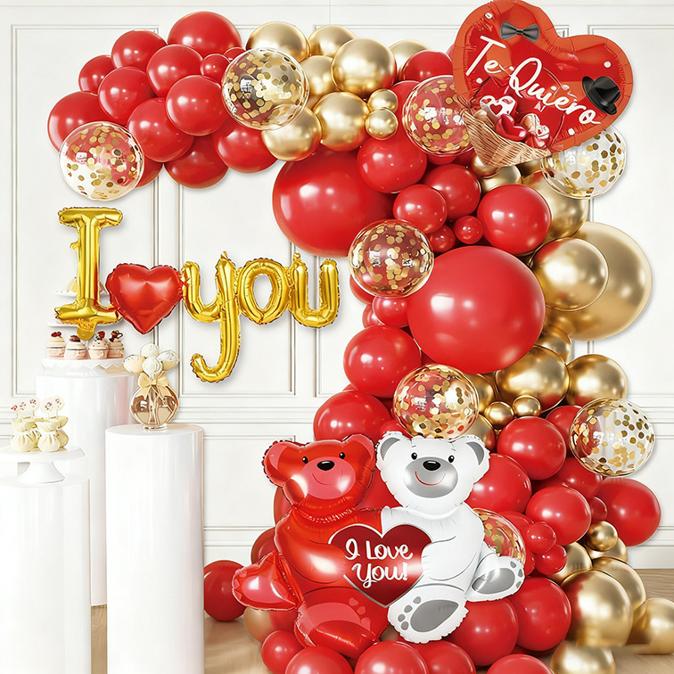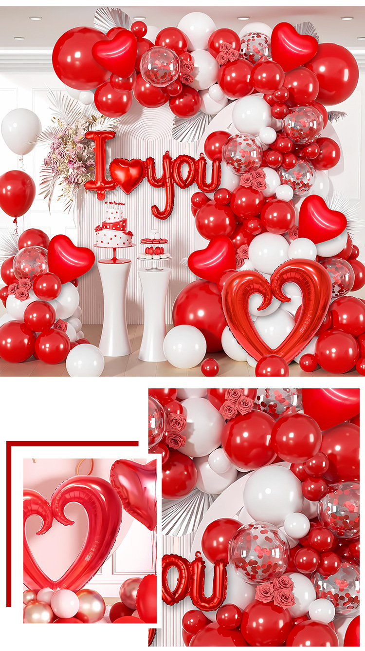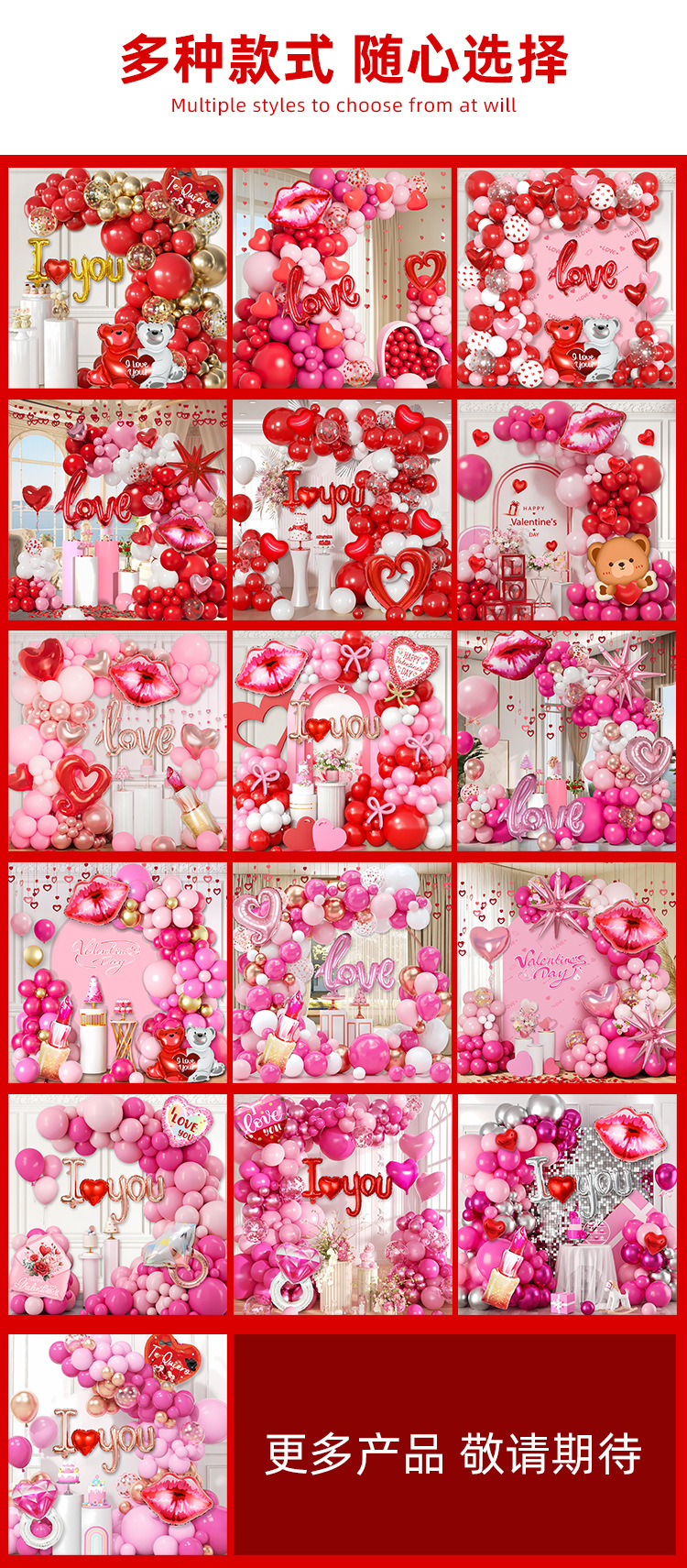 跨境新款气球派对情人节婚礼气球套装装饰场景布置背景墙气球链批
