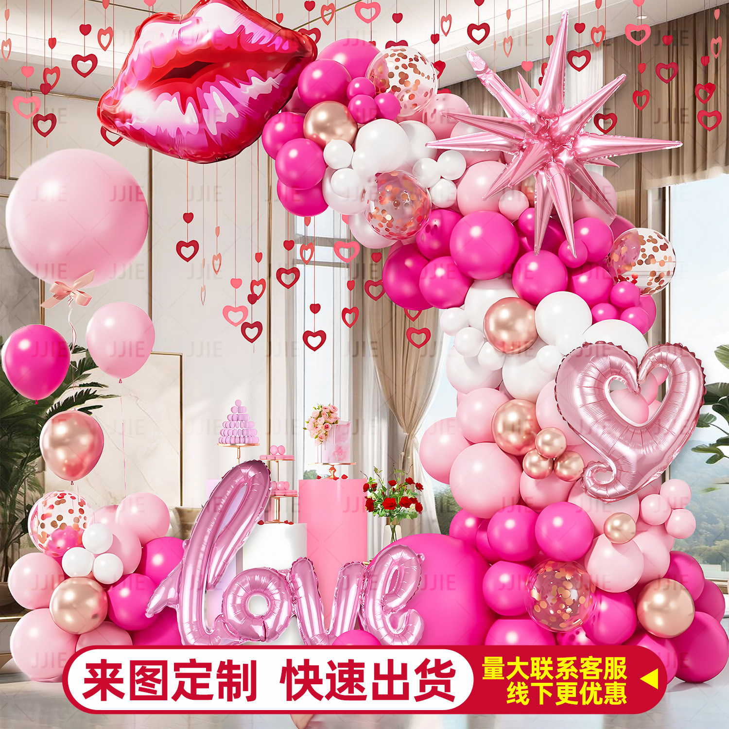 跨境玫桃红生日派对气球套装场景布置女神节母亲妇女节情人节装饰
