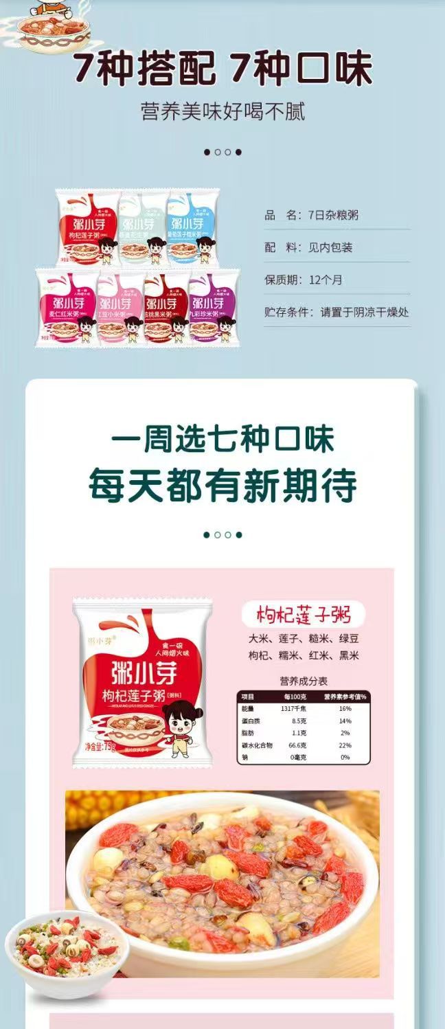 包装规格 七日粥75*1袋,七日粥75*2袋,七日粥75*3袋,七日粥75*4袋,七日粥75*5袋,七日粥75*6袋,七日粥75*7袋