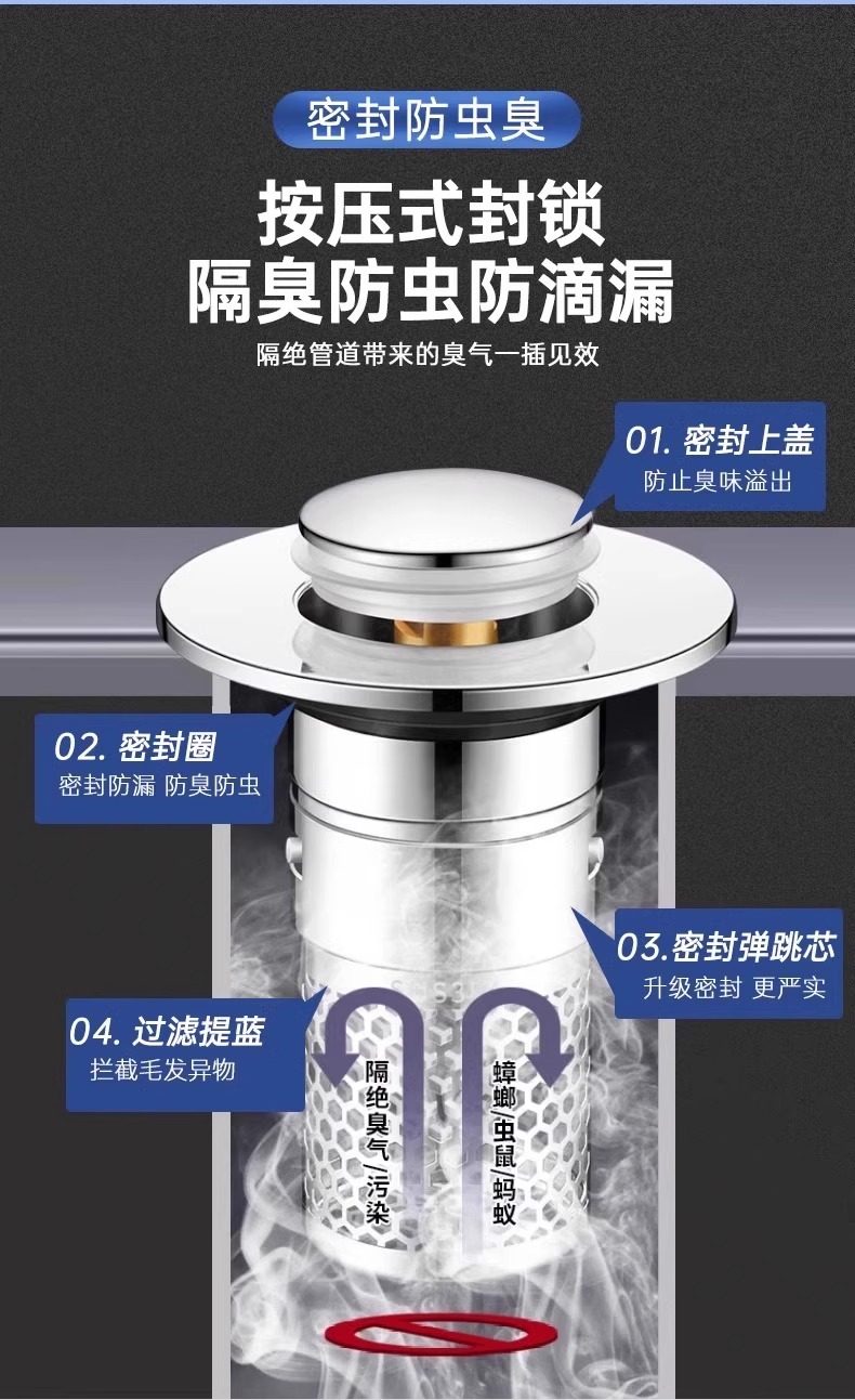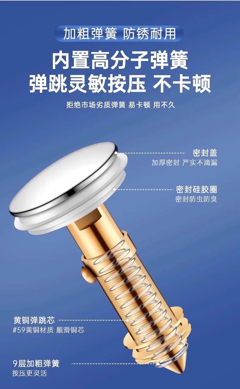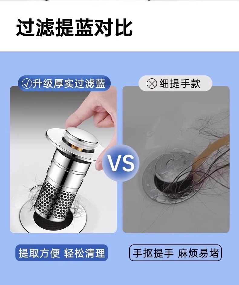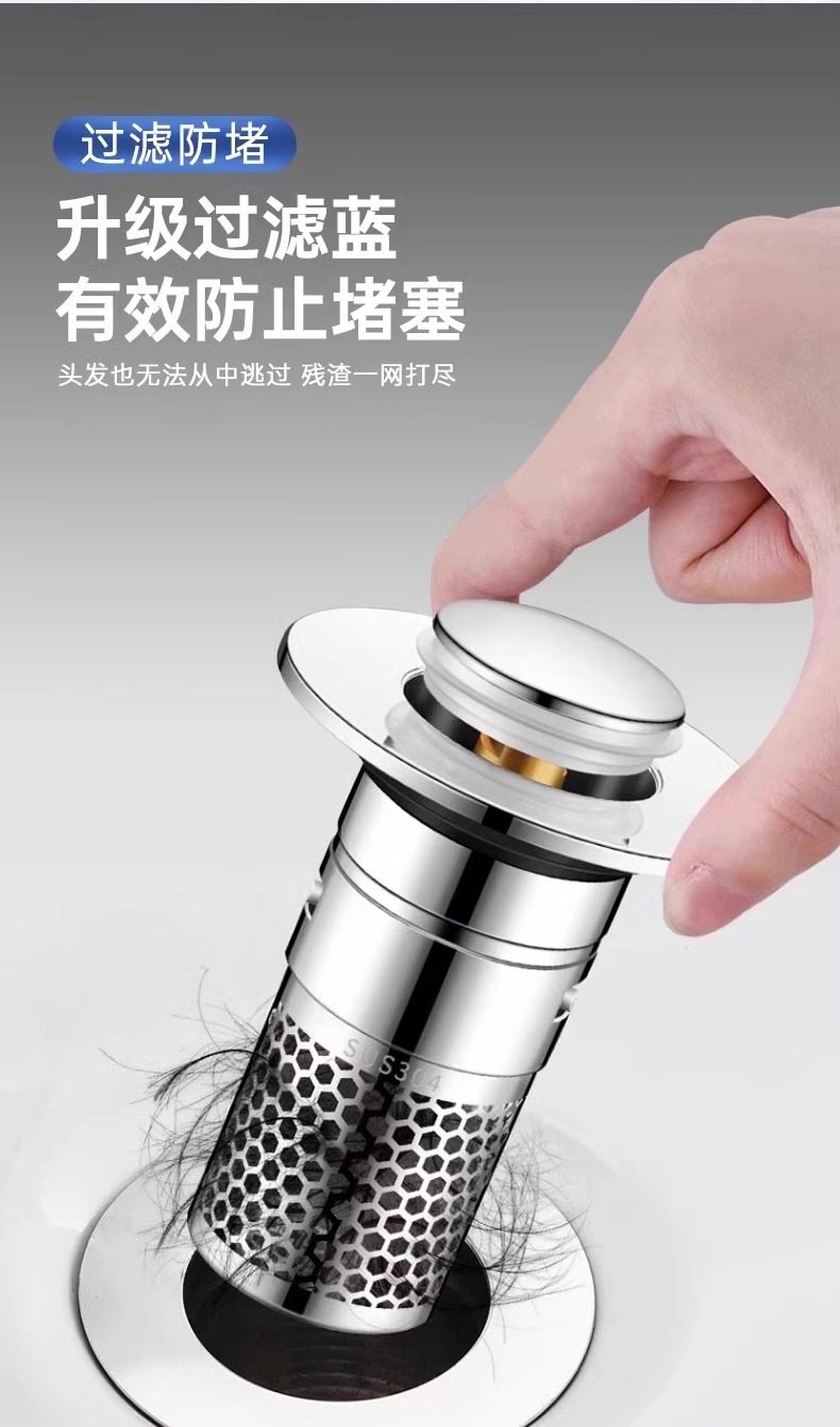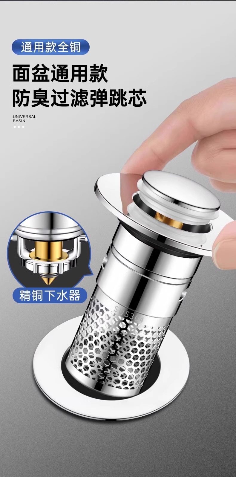 洗手盆脸盆漏水塞子面盆弹跳芯按压式配件防臭过滤通用下水器滤网