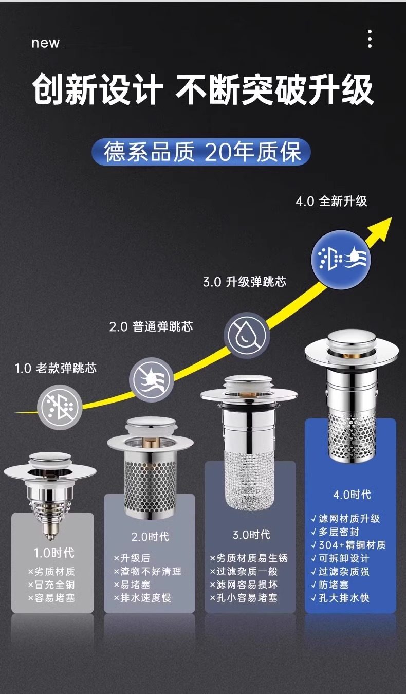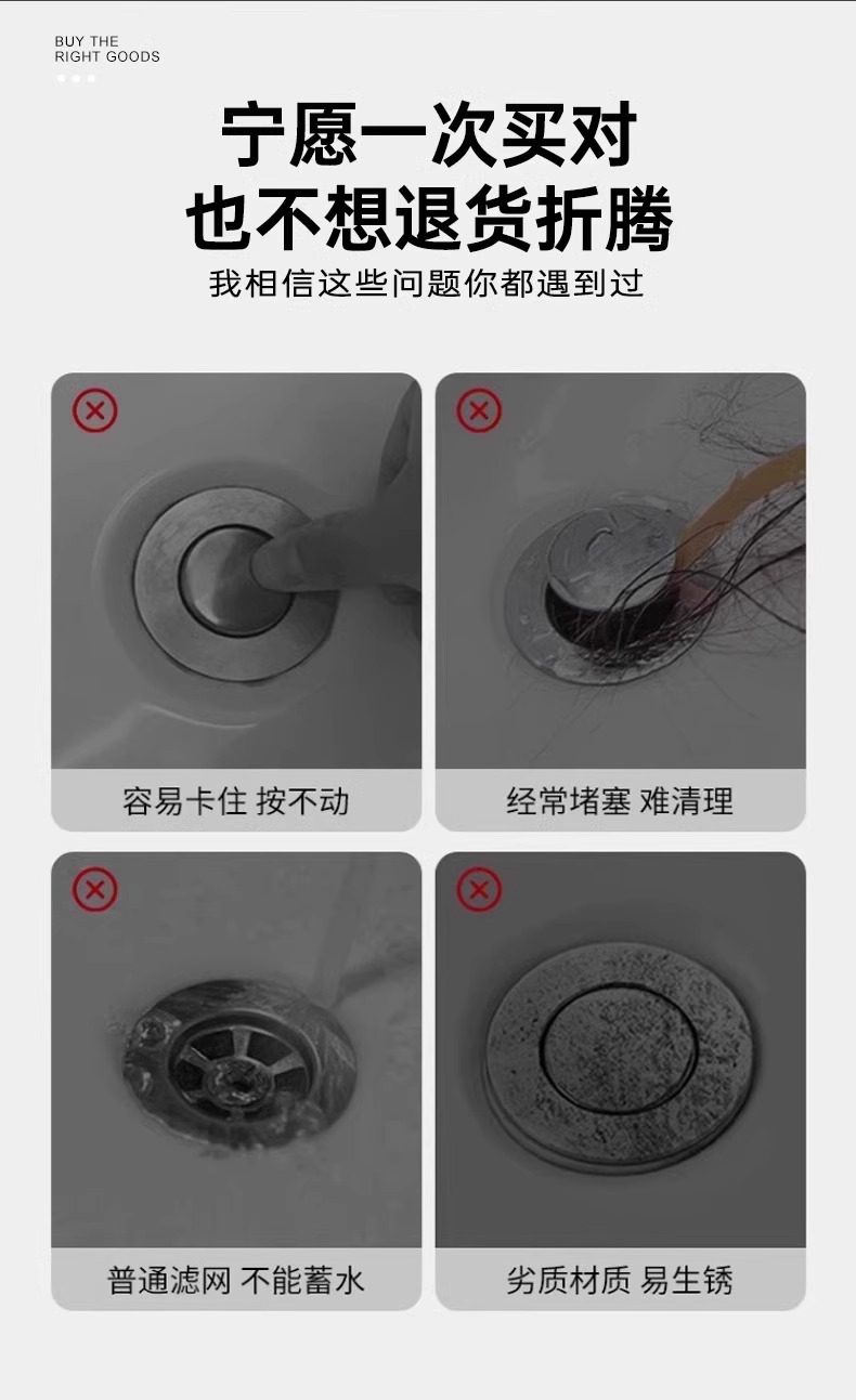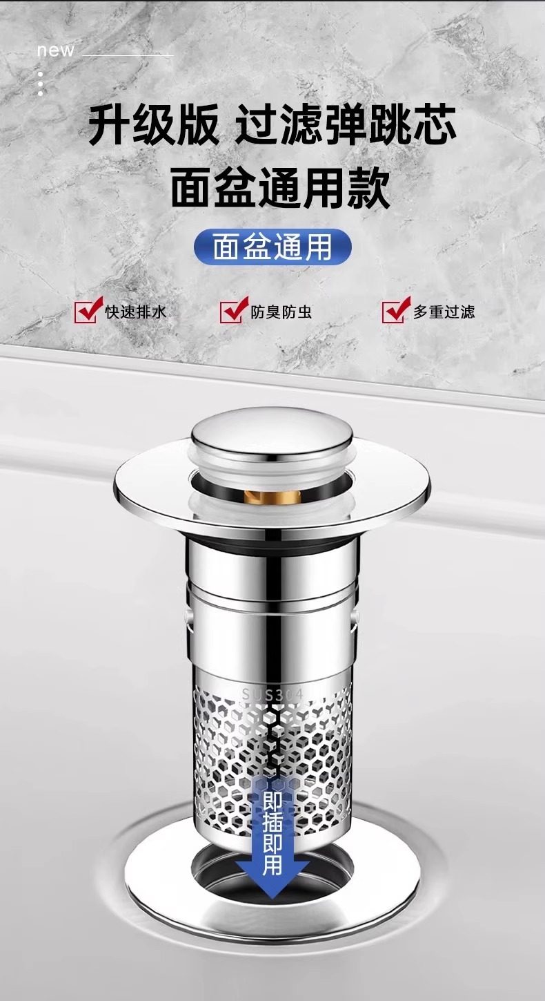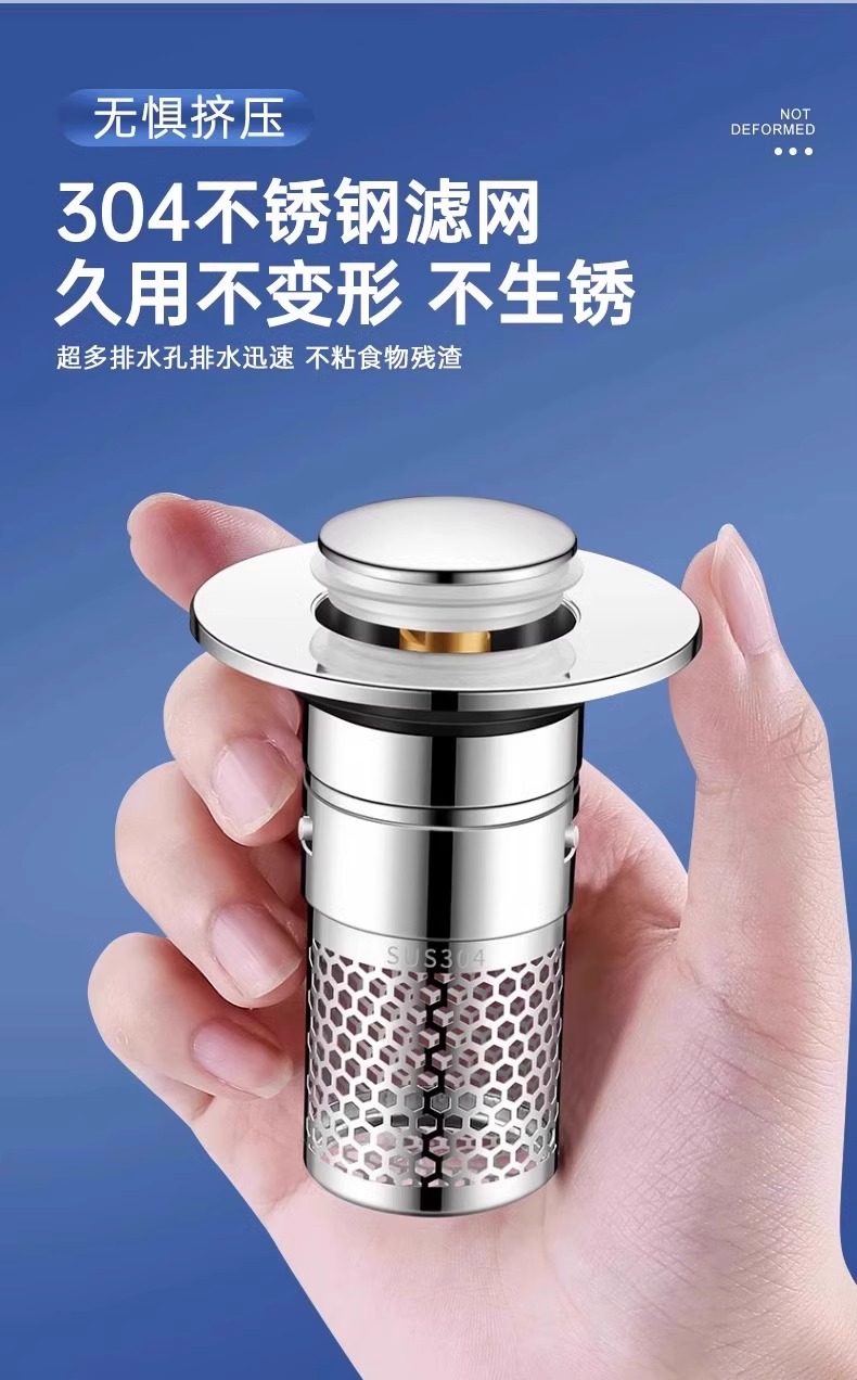 洗手盆脸盆漏水塞子面盆弹跳芯按压式配件防臭过滤通用下水器滤网