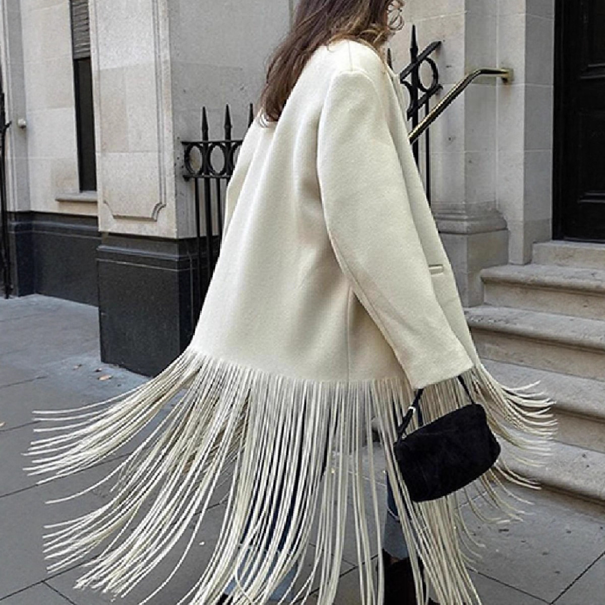 2025年秋冬新作 欧米風婦人服 ウール素材 エレガントなスーツカラー タッセル付き ミドル丈 ウインドブレーカー レディースジャケット