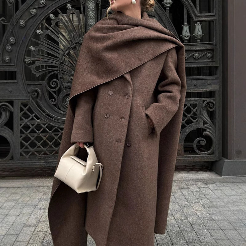 在庫あり 越境 秋冬 2024 スカーフ付きコート 多用途ジャケット ケープ ロング丈 レトロ 長袖 グレー レディース