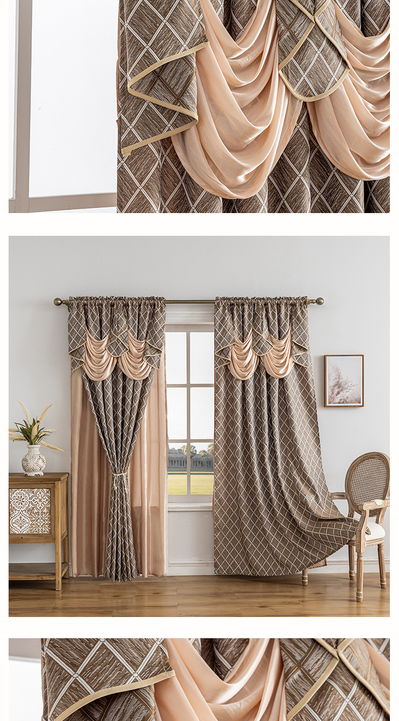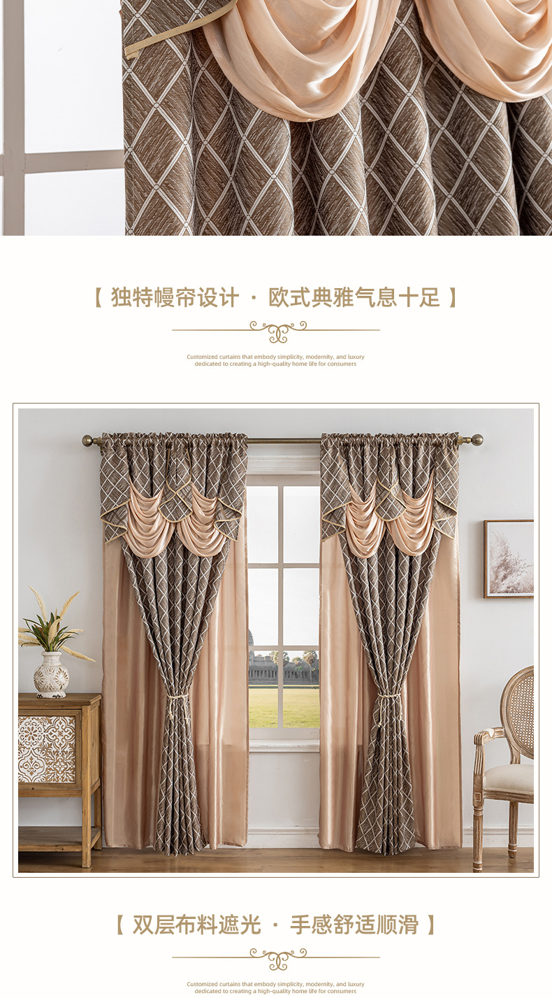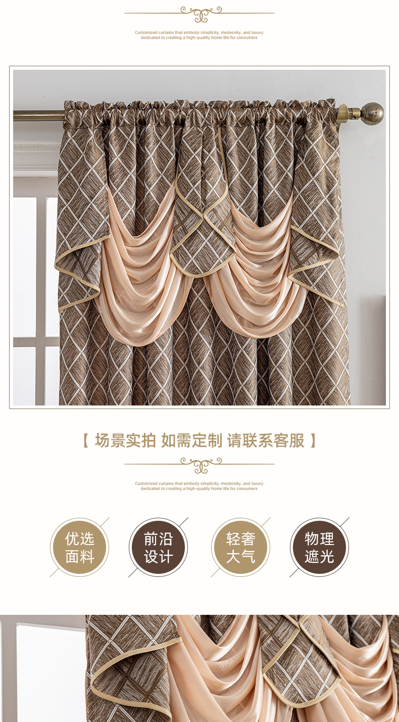 外国貿易専用遮光ジャカードカーテンクロスボーダーTEMU人気リビングルームベッドルームチェック柄工場直販紹興カーテン